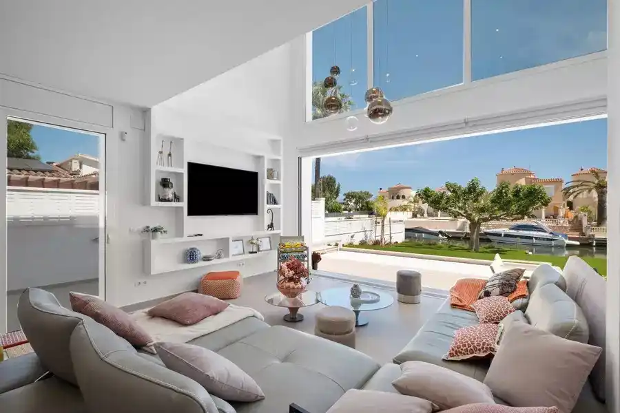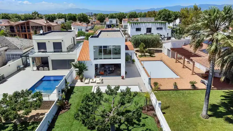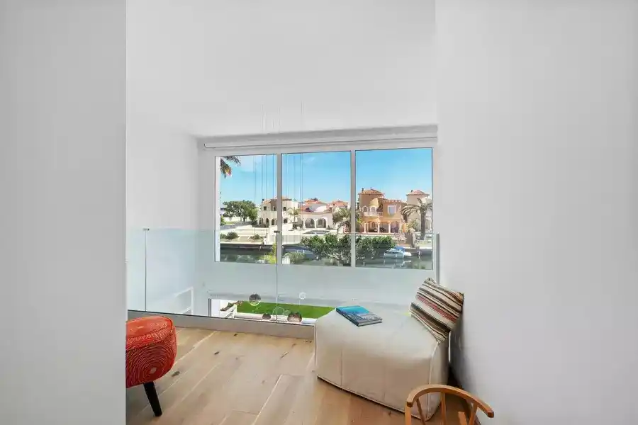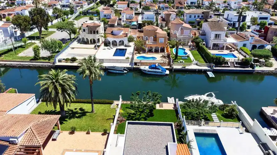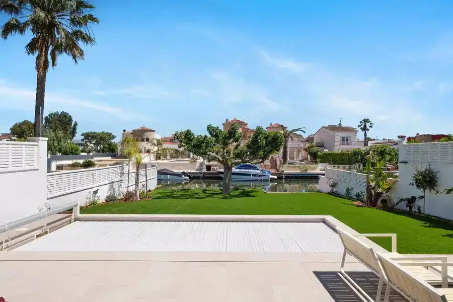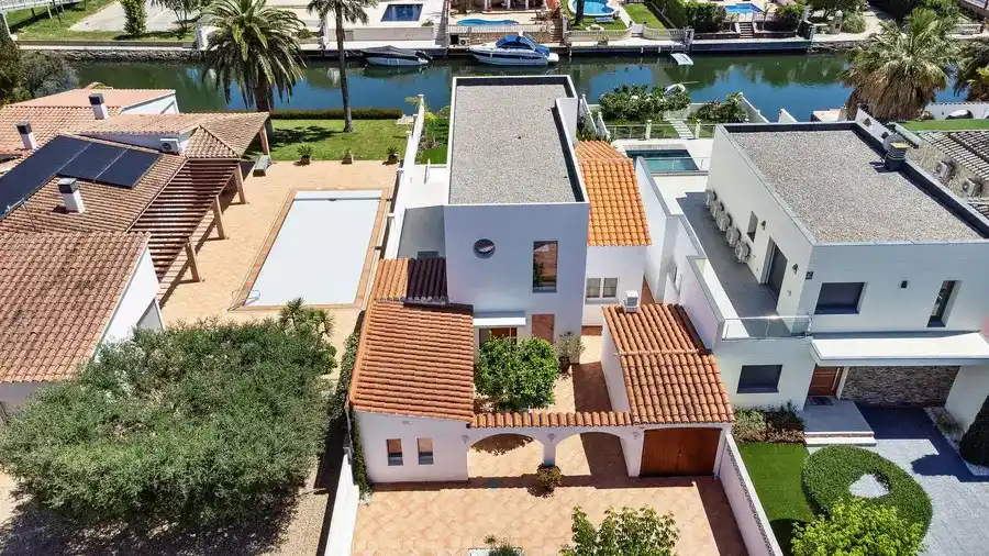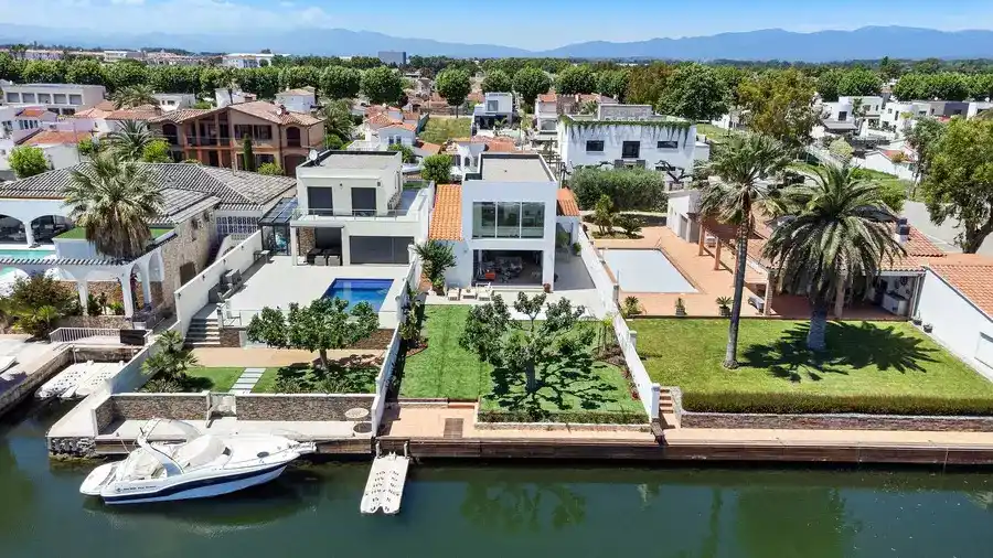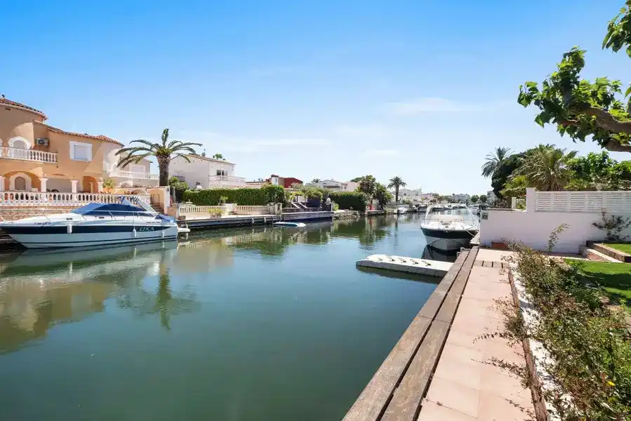 Exclusiva casa moderna en un canal ample de Empuriabrava. Exclusiva vila moderna reformada el 2024 en canal ample – Empuriabrava Aquesta preciosa casa, totalment reformada l’any 2024 amb acabats d’alta qualitat, es troba en una de les zones més cotitzades d’Empuriabrava. Gaudeix d’una excel·lent orientació sud-est, que garanteix llum natural durant tot el dia. A la planta baixa hi trobem una elegant cuina oberta al saló-menjador, amb accés directe a un ampli jardí privat i a una magnífica piscina d’aigua salada de 7 x 2,5 metres. La propietat disposa també d’un amarratge privat de 12 metres sobre un canal ample, ideal per als amants de la navegació. En aquesta mateixa planta hi ha dos dormitoris dobles, tots dos amb bany en suite, així com un lavabo de cortesia. La planta superior acull dos dormitoris addicionals, també en suite, un gran traster i un espai polivalent ideal per a oficina o despatx, amb la possibilitat de crear un cinquè dormitori. Extres i equipaments: sistema de domòtica, calefacció de gasoil per radiadors, aire condicionat reversible, excel·lent aïllament tèrmic, finestres d’alumini amb doble vidre i persianes elèctriques. La propietat disposa de garatge tancat per a un vehicle, plaça d’aparcament per a dos cotxes més i carregador per a vehicle elèctric. Una vila exclusiva i moderna sobre canal ample, perfecta com a residència habitual o segona residència de luxe.