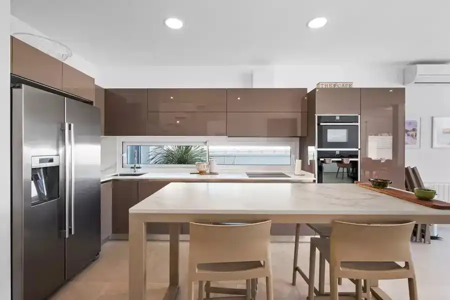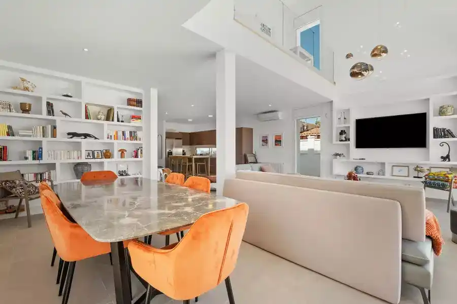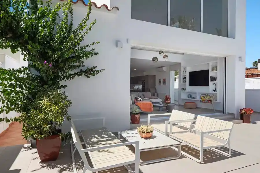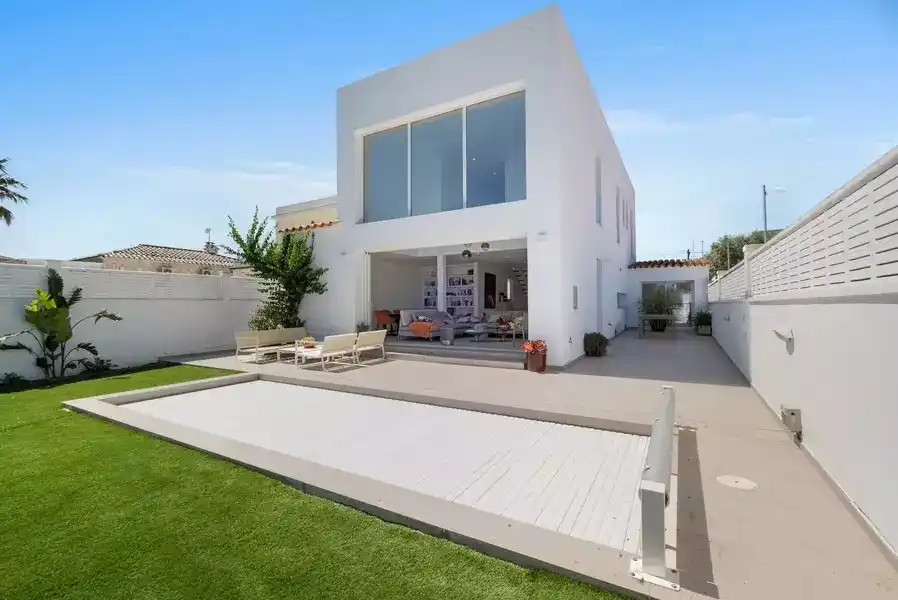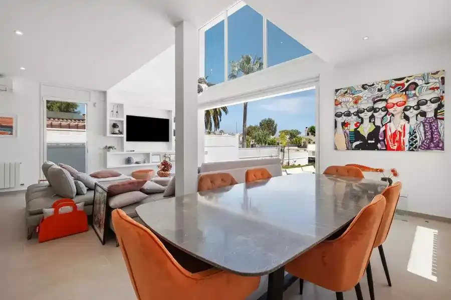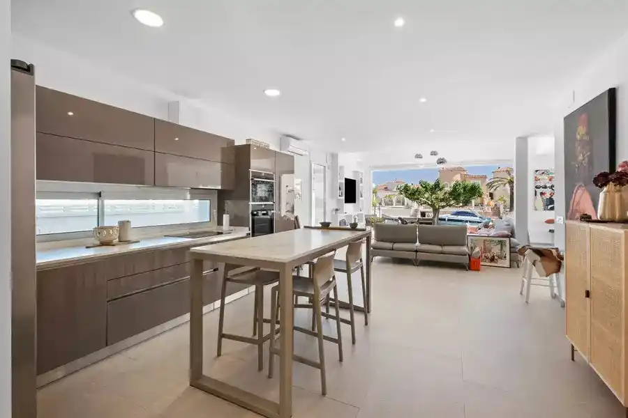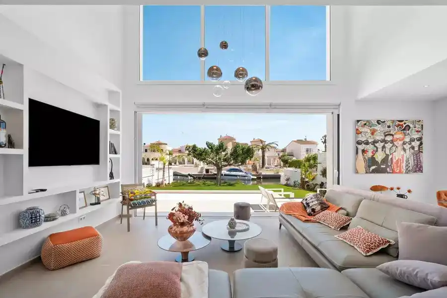 Exclusiva casa moderna en un canal ample de Empuriabrava. Exclusiva vila moderna reformada el 2024 en canal ample – Empuriabrava Aquesta preciosa casa, totalment reformada l’any 2024 amb acabats d’alta qualitat, es troba en una de les zones més cotitzades d’Empuriabrava. Gaudeix d’una excel·lent orientació sud-est, que garanteix llum natural durant tot el dia. A la planta baixa hi trobem una elegant cuina oberta al saló-menjador, amb accés directe a un ampli jardí privat i a una magnífica piscina d’aigua salada de 7 x 2,5 metres. La propietat disposa també d’un amarratge privat de 12 metres sobre un canal ample, ideal per als amants de la navegació. En aquesta mateixa planta hi ha dos dormitoris dobles, tots dos amb bany en suite, així com un lavabo de cortesia. La planta superior acull dos dormitoris addicionals, també en suite, un gran traster i un espai polivalent ideal per a oficina o despatx, amb la possibilitat de crear un cinquè dormitori. Extres i equipaments: sistema de domòtica, calefacció de gasoil per radiadors, aire condicionat reversible, excel·lent aïllament tèrmic, finestres d’alumini amb doble vidre i persianes elèctriques. La propietat disposa de garatge tancat per a un vehicle, plaça d’aparcament per a dos cotxes més i carregador per a vehicle elèctric. Una vila exclusiva i moderna sobre canal ample, perfecta com a residència habitual o segona residència de luxe.