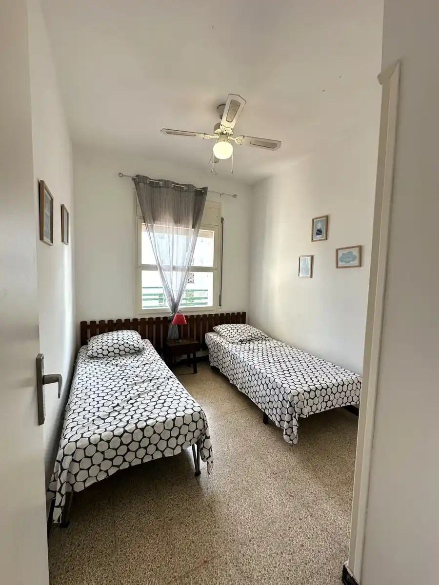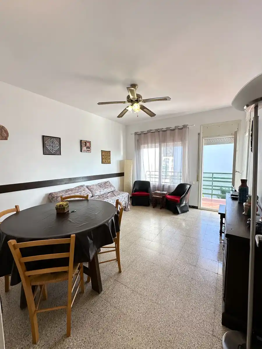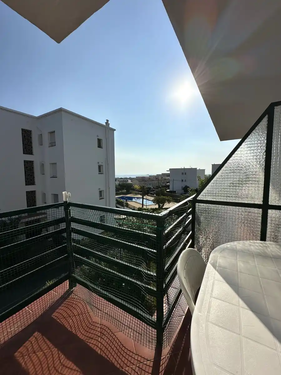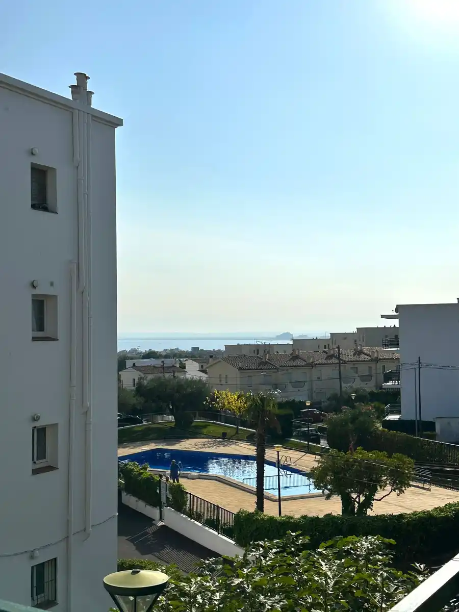 Pis en venda en una tranquil·la zona residencial, ideal tant per viure tot l´any com per gaudir-lo com a segona residència. Situat a la primera planta d´un edifici sense ascensor, aquest habitatge ofereix un entorn còmode i relaxat, amb piscina comunitària, aparcament compartit i servei de consergeria operatiu durant tot l´any. El pis es distribueix en un rebedor, un ampli i lluminós saló-menjador amb accés directe a una terrassa de 9 m² que ofereix agradables vistes al mar ia la muntanya, una cuina independent equipada, un bany complet amb dutxa i dos dormitoris, un doble i un altre individual, tots dos amb armaris de paret. A més, hi ha la possibilitat d'adquirir un garatge tancat de manera opcional. Es troba en una zona ben comunicada i amb tots els serveis propers, cosa que converteix aquesta propietat en una excel·lent oportunitat per als que busquen tranquil·litat sense renunciar a la comoditat. Contacti'ns per a més informació o per concertar una visita.[IW]