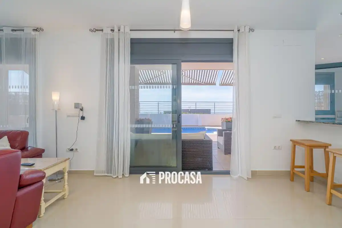 Preciosa casa orientada al sud amb vistes clares, espais amplis i un disseny pensat per al confort. Amb un total de 303 m² construïts i 236 m² útils, aquesta propietat ofereix un estil de vida mediterrani. La casa està ubicada en un punt totalment cèntric, a només 2 minuts del centre de Palau-Saverdera. La casa es distribueix en dues plantes principals: A la planta baixa hi ha el rebedor, un lavabo de cortesia (WC), zona de bugaderia, cuina oberta al saló-menjador amb llar de foc de llenya (insert) i accés directe a una àmplia terrassa amb piscina d’aigua salada climatitzada. A la primera planta hi ha 2 dormitoris dobles amb aire condicionat, armaris encastats, terrasses privades i televisió, a més de 2 banys complets, un d’ells en suite. A la segona planta hi ha 4 dormitoris addicionals, un d’ells doble amb sortida a terrassa, i tres més amb diferents distribucions, tots amb aire condicionat (alguns amb armaris encastats i TV), i un bany complet amb banyera, dutxa i doble lavabo. L’habitatge també compta amb un garatge doble amb porta elèctrica, diversos trasters, tendals elèctrics amb sensor de vent, calefacció de gas ciutat, alarma, caixa forta i espai exterior per aparcar fins a 4 cotxes.