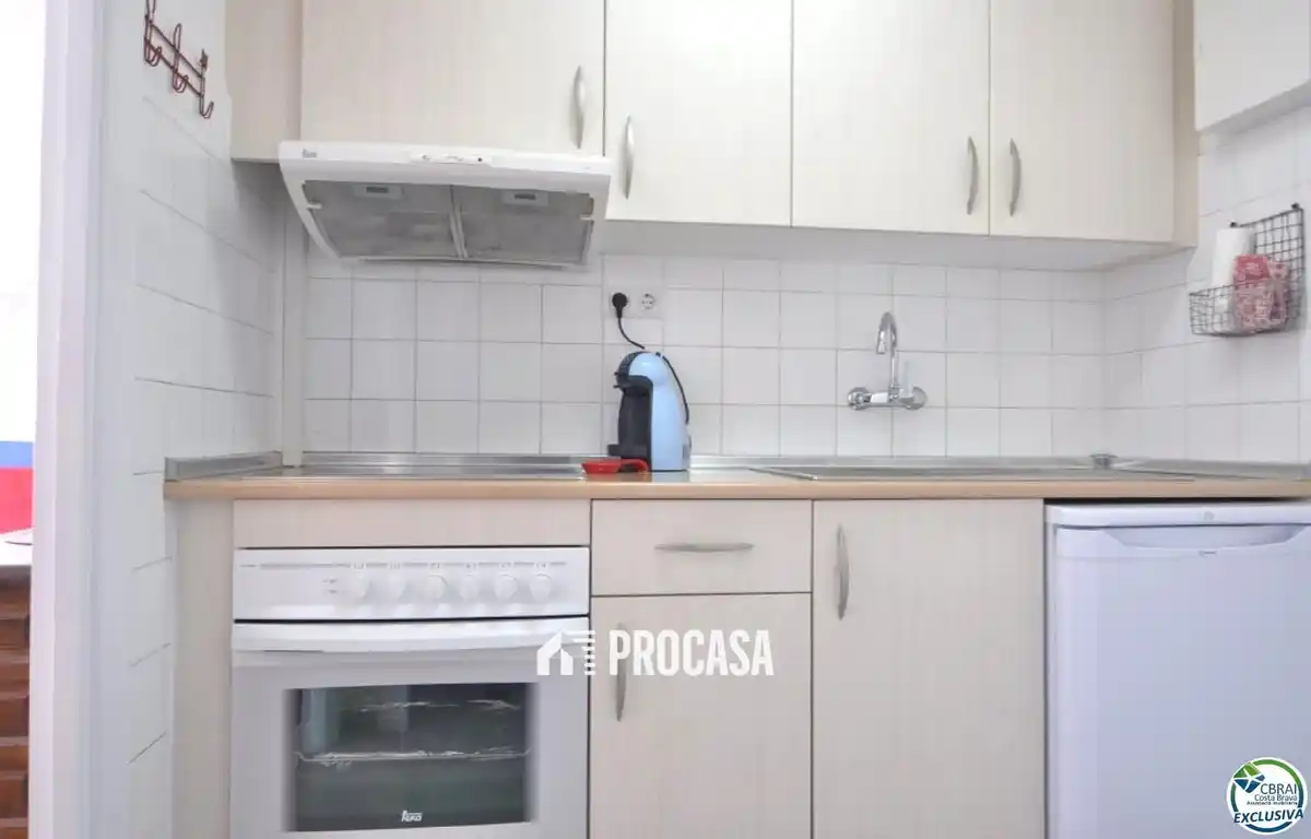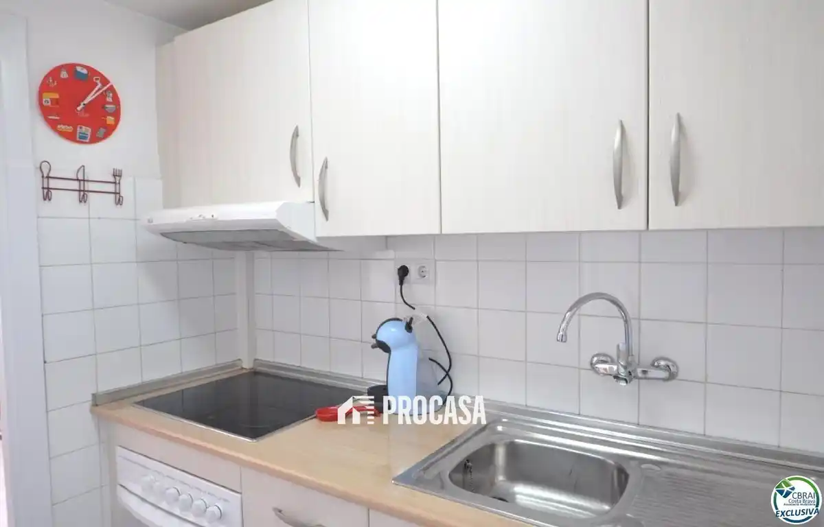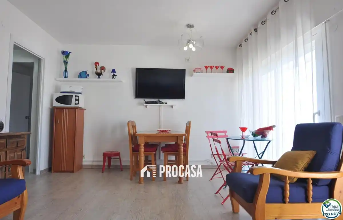 En venda aquest acollidor apartament situat a primera línia de mar a Roses (Costa Brava), amb una terrassa que ofereix vistes espectaculars sobre el mar i la badia. L´habitatge disposa d´un dormitori principal i una alcova, un saló menjador lluminós amb sortida directa a la terrassa i una cuina americana oberta al´espai de dia, pràctica i funcional. El complex residencial compta a més amb piscina comunitària, ideal per gaudir de l´estiu en un entorn exclusiu davant del Mediterrani. La seva orientació sud-est us permet gaudir del sol durant el matí i el migdia, i la ubicació és immillorable: a només uns passos de la sorra. L'apartament disposa de llicència turística el que el converteix no només en una segona residència fantàstica, sinó també en una excel·lent inversió amb alta rendibilitat de lloguer de vacances.