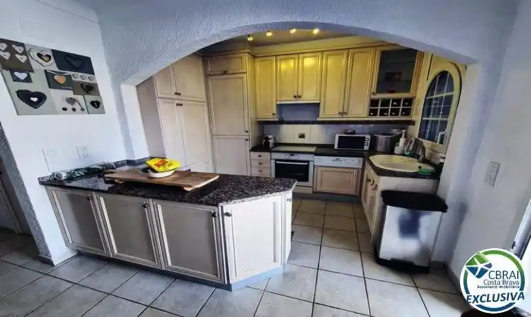 Avui us presentem una bonica casa amb amarratge ubicada al Port Argonautes d'Empuriabrava. Tenen dues plantes distribuïdes de la següent manera. A la planta baixa tenen un vestíbul d'entrada, un bany complet, un saló lluminós i gran, la sala d'estar i una cuina americana. Podeu accedir a la piscina i l'amarratge pel saló.~~En aquest amarratge de 12 metres tenen la possibilitat d'amarrar un veler o embarcació amb flyer, ja que es troba abans dels primers ponts. És més, tenen la sortida al mar a tan sols 7 minuts.~~A la primera planta s'ubiquen les tres habitacions i una de les quals és molt gran, i una cambra de bany. Hi ha, a més, dues terrasses amb vistes al canal.~~Beneficis: amarratge de 12x4 metres, piscina, 3 habitacions, 2 banys complets, finestres de doble vidre, aire condicionat a la primera planta, ventiladors a la planta baixa, persianes elèctriques a totes les estances i sistema d'alarma.~~Despeses anuals: IBI = 800€ i Comunitat = 250€.