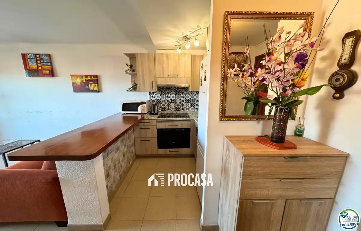 Gelegen in der oberen Wohngegend von Roses, einer der begehrtesten Lagen dank ihres Panoramablicks auf die Bucht und der Nähe zum Stadtzentrum, vereint diese helle Wohnung Komfort, Helligkeit und mediterranes Flair. Mit 32 m² Wohnfläche plus einer verglasten Terrasse von 11 m² bietet sie einen idealen Ort, um das ganze Jahr über das Leben an der Costa Brava zu genießen. Der offene Wohn- und Essbereich mit Küche öffnet sich zur Terrasse und schafft ein Gefühl von Weite und Leichtigkeit. Ein Schlafzimmer, ein renoviertes Badezimmer mit großer Dusche sowie ein gemeinschaftlicher Parkplatz runden dieses attraktive Angebot ab. Perfekt geeignet als Ferienwohnung oder Kapitalanlage an der Costa Brava, dank der privilegierten Lage und des herrlichen Meerblicks.