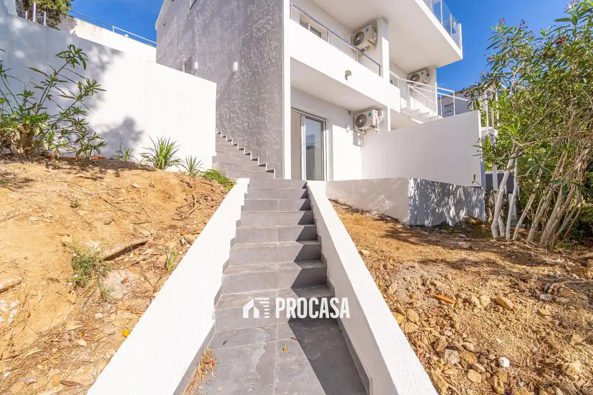 Dieses kürzlich renovierte Haus befindet sich in einer der gefragtesten Gegenden von Roses, nur 200 Meter von der idyllischen Bucht Almadrava entfernt, bekannt für ihr klares Wasser und ihre natürliche Umgebung. Das Haus bietet eine moderne und funktionale Raumaufteilung. Beim Betreten gelangt man in einen offenen Wohnbereich mit voll ausgestatteter amerikanischer Küche und einem Wohnzimmer mit direktem Meerblick. Im Außenbereich befinden sich zwei nach Südosten ausgerichtete Terrassen: eine 26 m² große Sonnenterrasse und eine 15 m² große überdachte Terrasse – perfekt zum Entspannen oder für Mahlzeiten im Freien. Mit 4 Schlafzimmern und 3 Badezimmern eignet sich diese Immobilie ideal für Familien oder alle, die großzügigen Wohnraum an der Costa Brava suchen. Zusätzliche Ausstattung: • Klimaanlage mit Heizfunktion • Doppelverglasung und elektrische Rollläden • Alarmsystem und Gegensprechanlage • Privater Parkplatz • Öffentlicher Parkplatz 150 m entfernt