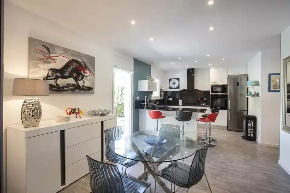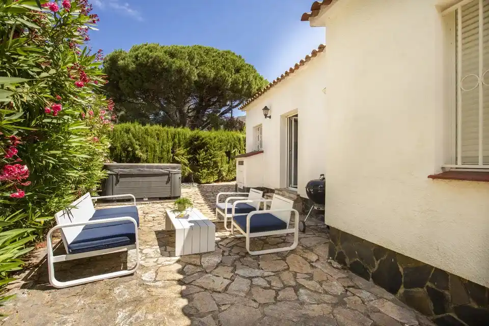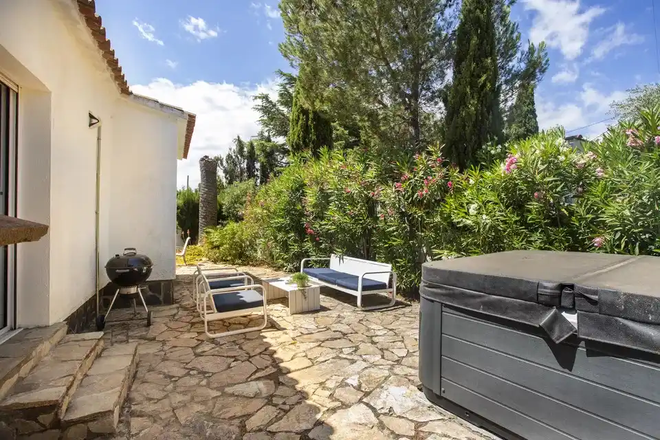 Mit Touristenlizenz! Charmantes Haus in Mas Boscá/Roses. Entdecken Sie dieses charmante Haus in Mas Busca, Roses, nur 3 km von den herrlichen Stränden entfernt, das komplett renoviert wurde, um Ihnen maximalen Komfort zu bieten. Es verfügt über drei geräumige Schlafzimmer, ein modernes Badezimmer mit italienischer Dusche und ein zusätzliches WC. Die amerikanische Küche, die voll ausgestattet ist, fügt sich perfekt in das gemütliche Esszimmer und das Wohnzimmer ein, das über zwei Zugänge verfügt: einen zum hinteren Teil des Hauses und einen zum Haupteingang, wo Sie eine sonnige Terrasse nach Süden finden, die ideal ist, um den ganzen Tag die Sonne zu genießen. Zu den Extras gehören umschaltbare Klimaanlage für Ihren Komfort das ganze Jahr über, Türen und Fenster aus PVC mit Doppelverglasung sowie ein Alarmsystem für Ihre Sicherheit. Es wird teilmöbliert verkauft, bereit zum Einziehen und Genießen. Außerdem können Sie sich in Ihrem exklusiven Jacuzzi entspannen, perfekt für Momente der Erholung und des Wohlbefindens.