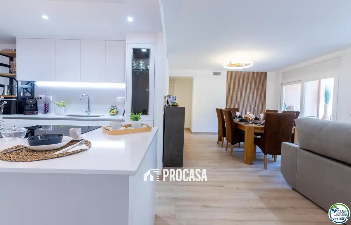 Entdecken Sie diese schöne, renovierte Wohnung nur 100 Meter vom Strand von Roses entfernt, in zentraler Lage mit allen Dienstleistungen in unmittelbarer Nähe: Supermärkte, Markt, Post, Restaurants und Geschäfte. Die Wohnung verfügt über drei Schlafzimmer, davon zwei als Suite mit eigenem kompletten Badezimmer mit Dusche, sowie ein drittes komplettes Badezimmer. Das großzügige Wohn-Esszimmer ist mit einer modernen Küche mit zentraler Insel verbunden und schafft einen praktischen und angenehmen Raum für den Alltag oder für Treffen mit Familie und Freunden. Die Wohnung ist mit einem Smart-Home-System sowie einer Klimaanlage mit Wärmepumpe über Luftkanäle ausgestattet, wodurch in allen Räumen das ganze Jahr über eine angenehme Temperatur gewährleistet wird.Außerdem verfügt die Wohnung über eine Terrasse. Die Immobilie wird unmöbliert verkauft. 📲📩 Kontaktieren Sie uns – wir begleiten Sie während des gesamten Kaufprozesses.