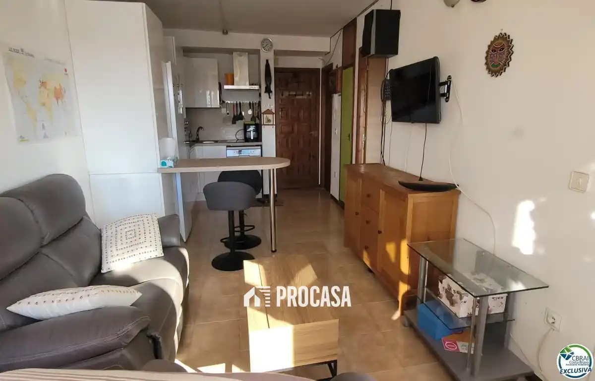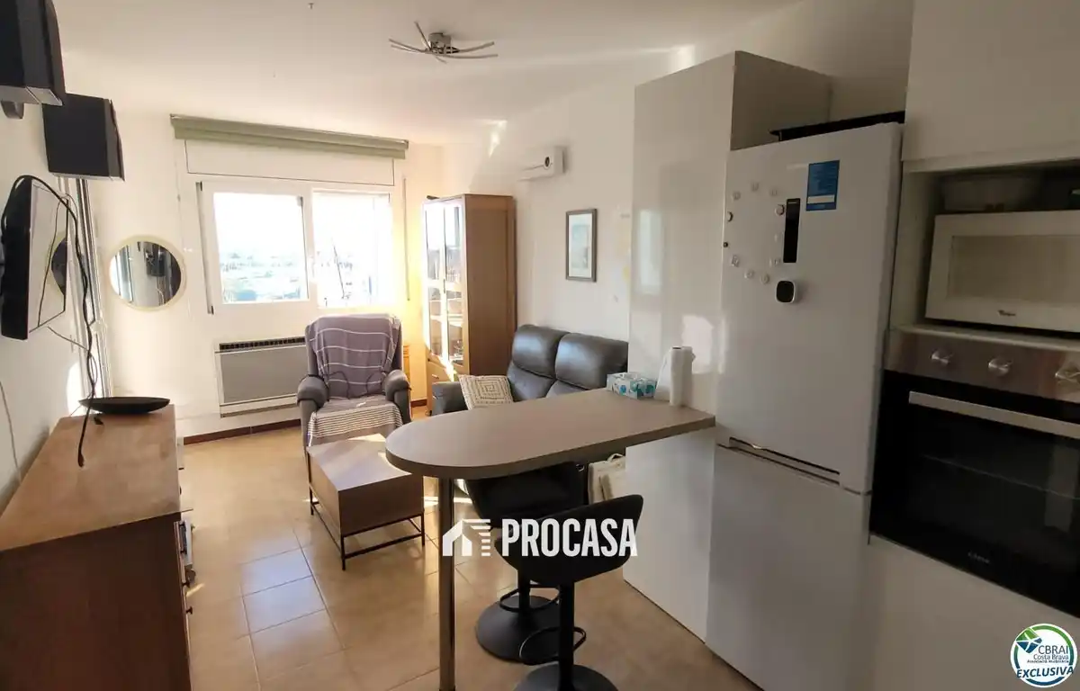 Charmante Einzimmerwohnung in privilegierter Lage mit herrlichem Blick auf die Boote und die Berge. Die Wohnung verfügt über ein helles Wohn- und Esszimmer mit Zugang zu einer verglasten Terrasse – ideal, um Sonnenaufgänge und Sonnenuntergänge zu genießen. Sie bietet eine moderne, voll ausgestattete offene Küche und ein elegantes Bad mit begehbarer Dusche. Das helle und geräumige Schlafzimmer ist perfekt zum Entspannen. Das Gebäude verfügt über einen Aufzug und einen gemeinschaftlichen Pool, der zum Entspannen und Erholen einlädt, ohne das Haus zu verlassen. In der Nähe aller Annehmlichkeiten, Restaurants und der Strandpromenade gelegen, ist diese Wohnung ideal sowohl zum ganzjährigen Wohnen als auch als Feriendomizil am Meer – mit allem Komfort und einem der schönsten Ausblicke der Region.
