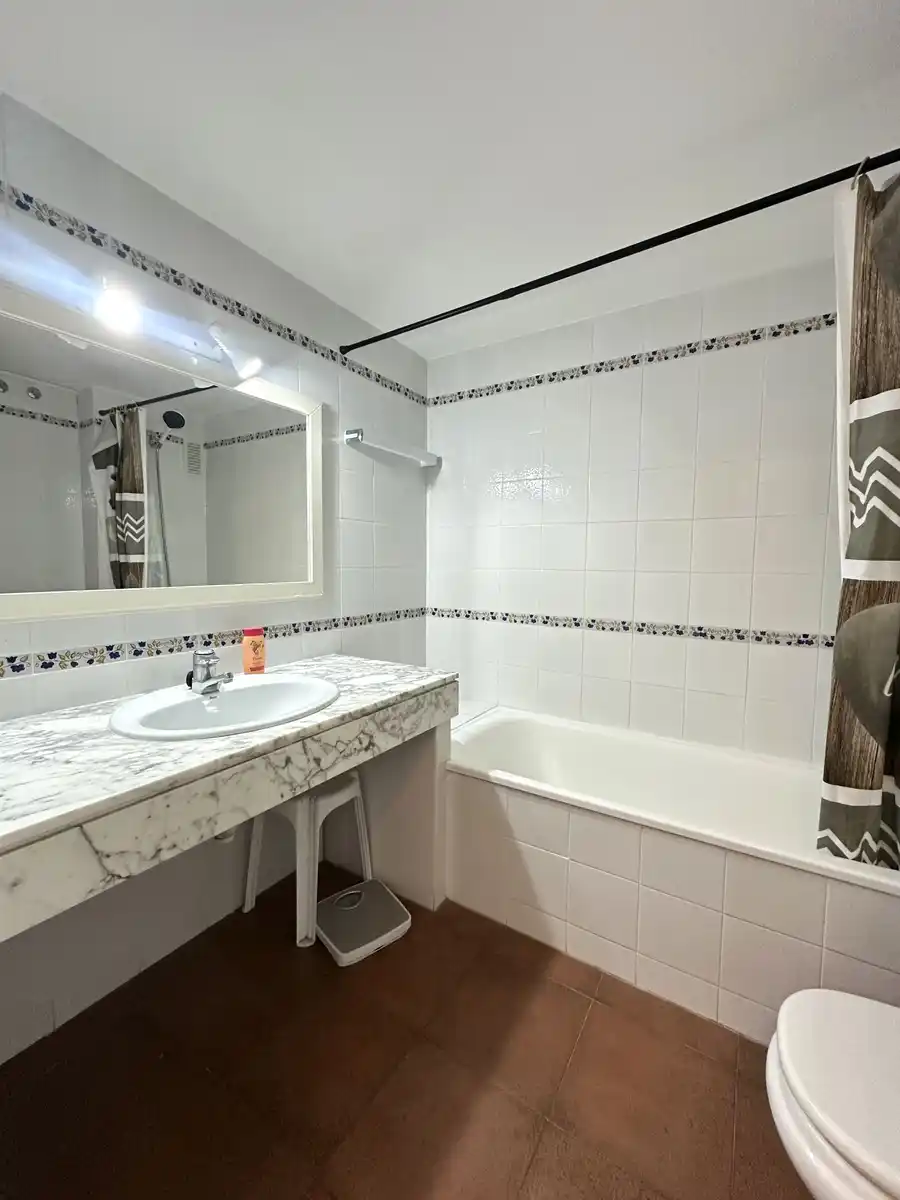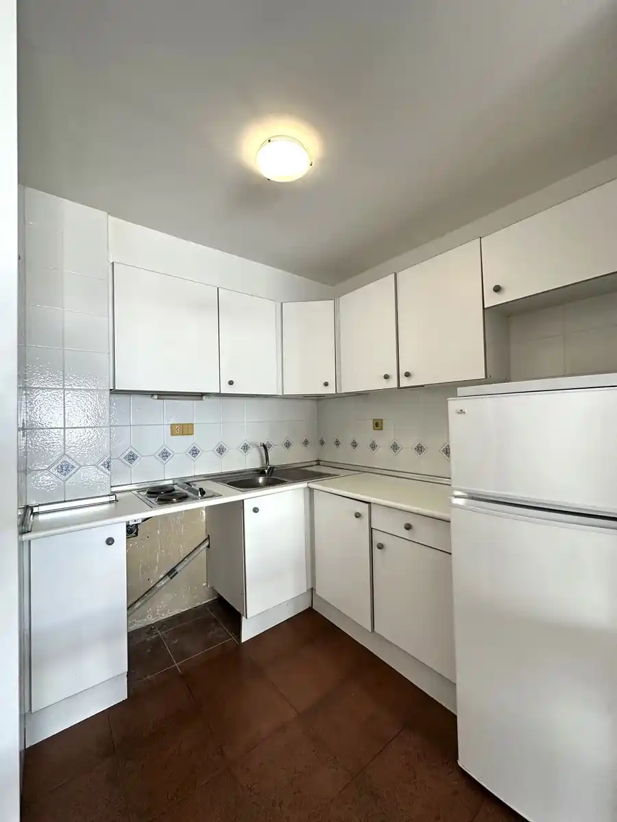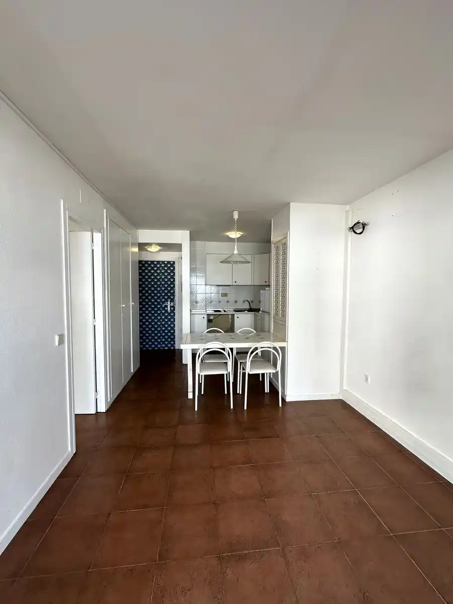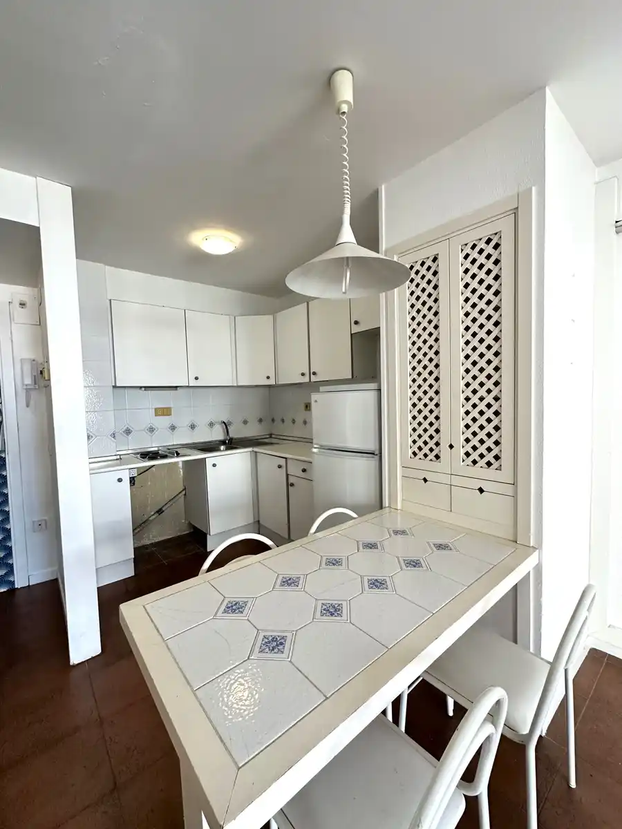 We present this fantastic apartment in Santa Margarida, with a valid TOURIST LICENSE, a true privilege nowadays and an excellent opportunity both for living and for a high-return investment. Located in a complete and well-maintained residential complex, the building offers lift, parking, communal garden and swimming pool, as well as year-round concierge service, ensuring comfort, security and quality of life. The apartment is distributed into a welcoming entrance hall, a bright living-dining room with open-plan kitchen, and a spacious double bedroom. Both the living room and the bedroom feature built-in wardrobes, optimizing storage space. The bathroom is complete and equipped with a bathtub. Among its excellent features is underfloor heating, providing comfort throughout the year. From both the living room and the bedroom there is direct access to a magnificent 10 m² terrace, east-facing, ideal for enjoying the morning sun and pleasant outdoor moments. A complete, bright property with great potential, located in one of the most sought-after areas of Santa Margarida.[IW]
