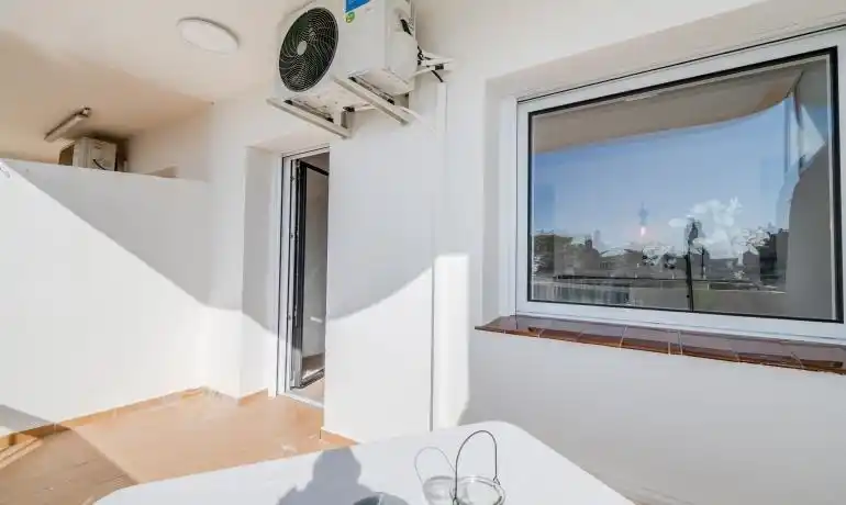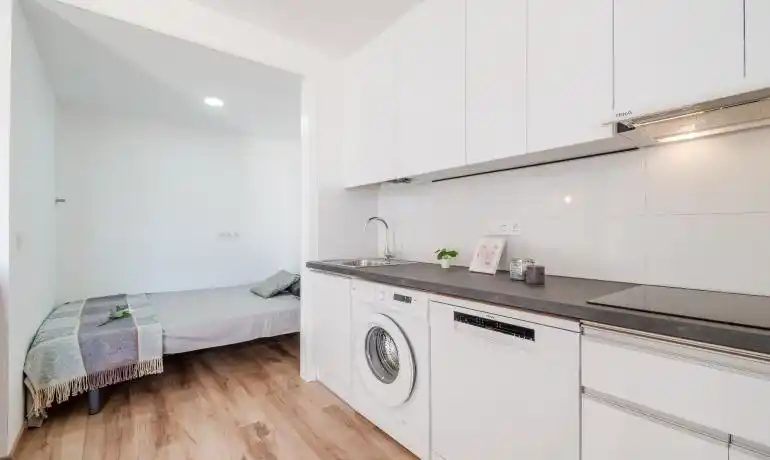 This charming open concept studio is located in a prime location in Santa Margarita, offering a bright and welcoming atmosphere. The room has a functional design that maximizes space and allows you to enjoy natural light throughout the day, thanks to its southeast orientation and unobstructed views of the canal.~~The modern and fully equipped kitchen offers state-of-the-art appliances, perfect for preparing delicious meals. The dining room, ideal for relaxing or receiving visitors, also enjoys magnificent views that complement the experience.~~The bathroom is practical and functional, equipped with a comfortable shower. In addition, the studio has a new hot/cold air machine, ensuring maximum comfort throughout the year.~~The building has an elevator, which adds convenience to access. Without a doubt, a perfect place to enjoy life in Santa Margarita.~