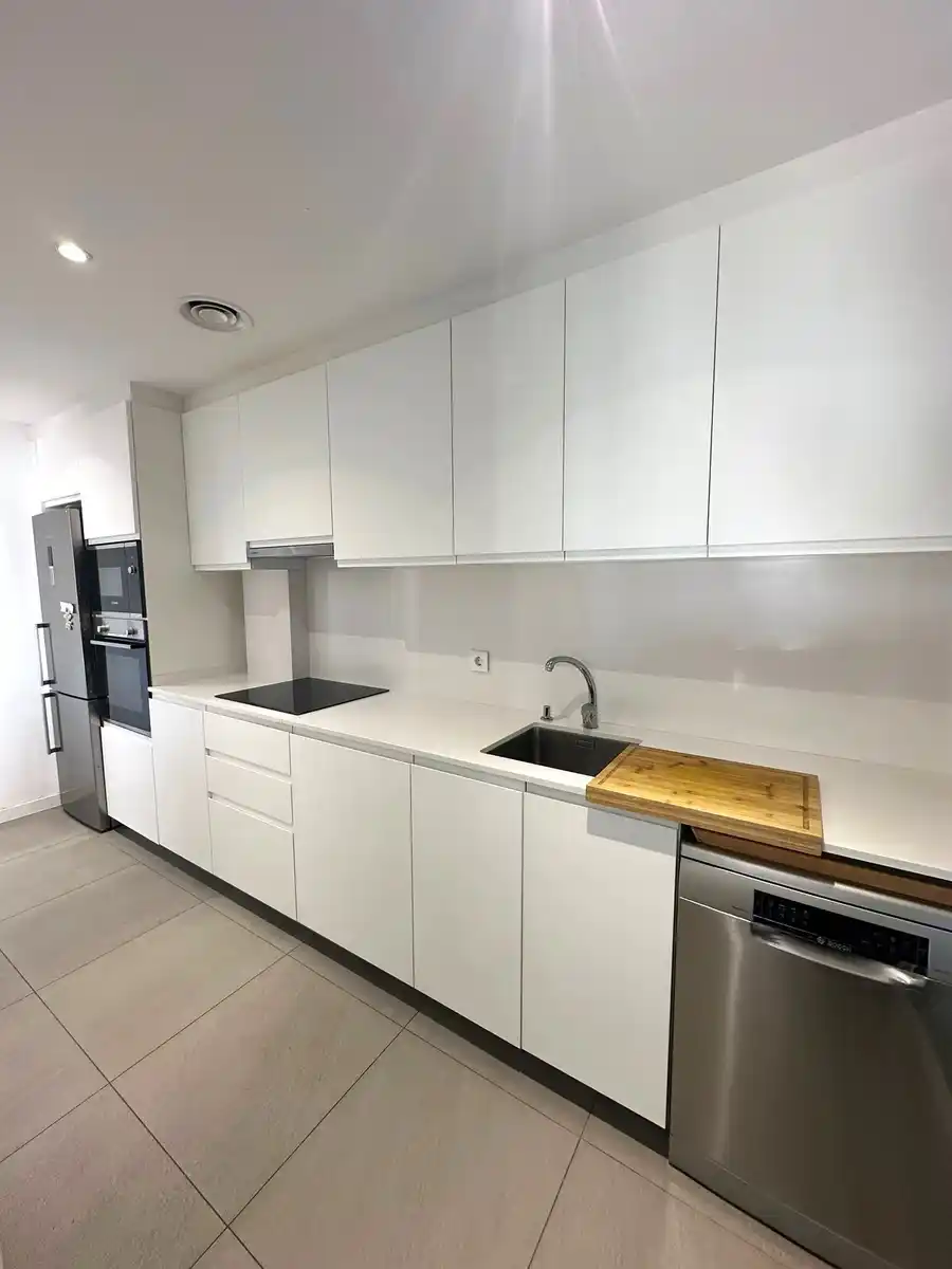 We present this magnificent recently built residence, located on the seafront, right in the heart of Roses, with all services and shops within walking distance. The apartment welcomes you with a pleasant entrance hall leading to a comfortable and functional layout. It offers two bedrooms, one double and one single, both with built-in wardrobes. The spacious and bright living-dining room opens onto a beautiful 10 m² terrace with sea views, perfect for enjoying the Mediterranean lifestyle. The semi-open kitchen, completely new and fully equipped, also provides access to a practical independent laundry room. The property features a large bathroom with shower and is equipped with an aerothermal system, ensuring comfort and energy efficiency all year round. Included is a private underground parking space, a real added value in this area. Most impressively, the building offers a car lift, providing easy and exclusive access to the garage. A unique opportunity to live by the sea in a modern home with all amenities and an unbeatable location.[IW]