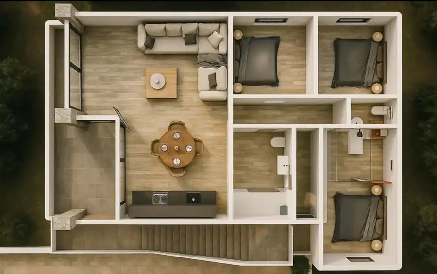 Luxury apartment with private pool and 80m² solarium, close to the beach. This luxury apartment, currently undergoing renovation, has been designed to offer a sophisticated, bright living experience fully connected to its Mediterranean surroundings. With 81 m² of interior space and 28 m² of terraces, the residence blends natural materials, contemporary lines and large windows that capture sunlight and the landscape throughout the day. The heart of the apartment is its elegant open-plan living area, where the warm texture of wood-effect ceramic flooring blends seamlessly with a modern, dark-toned kitchen, fully equipped. The living space opens onto a spacious terrace through large glass doors that frame views of palm trees and the sea, creating a perfect transition between indoors and outdoors. The property features three comfortable bedrooms designed for privacy and relaxation, as well as two contemporary bathrooms with high-quality finishes. Every room has been thoughtfully planned to maximise comfort, natural light and functionality. On the upper floor, an impressive 80 m² private solarium offers a 360º panoramic view, from which you can admire the sea and the natural surroundings in total privacy. It is the ideal place to create a chill-out area, an outdoor dining space or simply to relax under the sun. Outside, the property includes a large private patio with space for several vehicles and a minimalist-style pool surrounded by a relaxation area, perfect for cooling off and enjoying warm days. Elements such as smooth walls, an outdoor shower and selected greenery enhance the exclusive Mediterranean atmosphere of the project. All of this is located in a quiet residential area, just 100 metres from the beach and shops, offering comfort, privacy and a relaxed lifestyle by the sea. Completion scheduled for spring 2026.