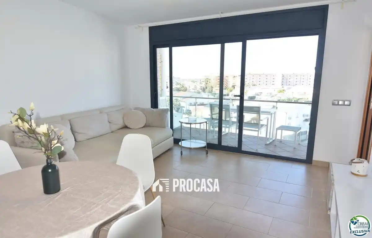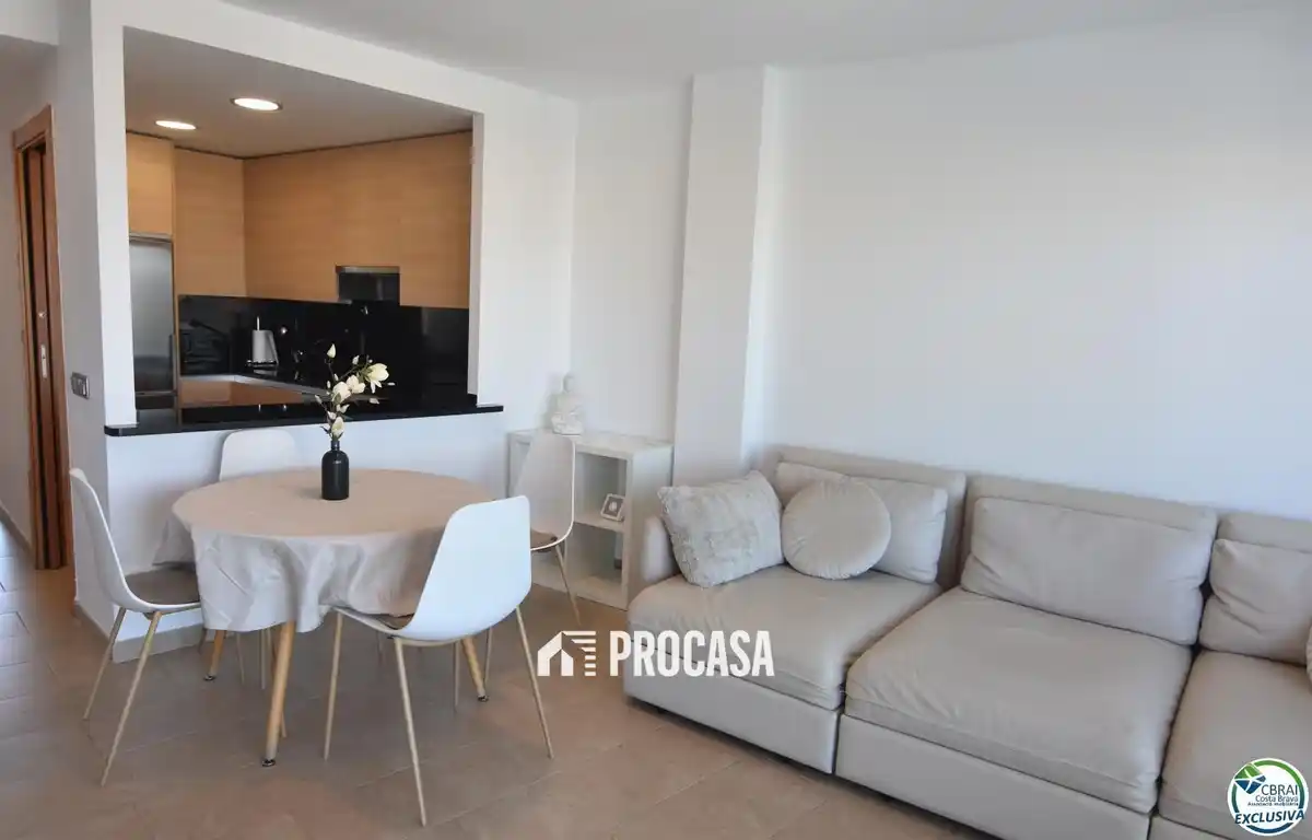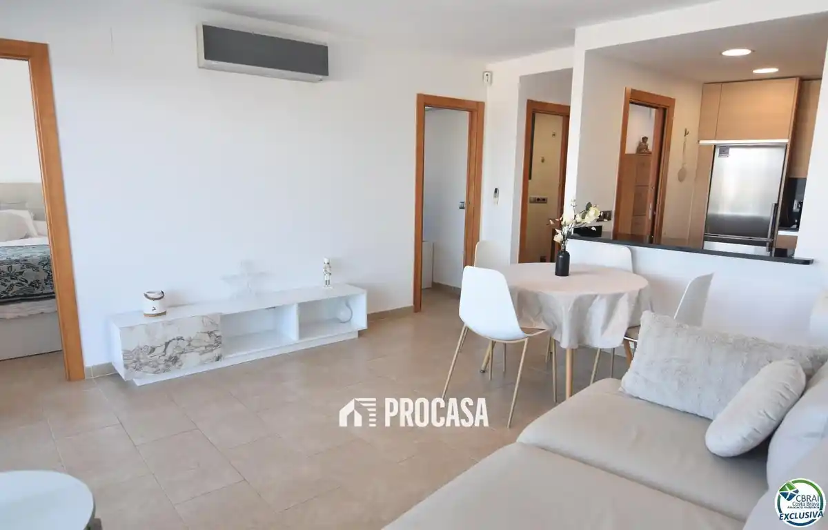 En venta acogedor apartamento totalmente reformado en Roses, situado en un moderno complejo residencial. Consta de un salón-comedor con una cocina americana, dos habitaciones y un baño con ducha. También dispone de una terraza privada de 7 m² con agradables vistas al canal de Santa Margarita. La vivienda destaca por su diseño actual, acabados de calidad y excelente equipamiento: aire acondicionado, ascensor, piscina comunitaria y dos plazas de aparcamiento una exterior y el otro interior en el mismo edificio. Ubicado en una zona tranquila, cerca de todos los servicios y a tan solo 1500m de la playa. Ideal como segunda residencia o inversión turística gracias a su licencia vigente. 📲📩 Contáctanos y te ayudamos en todo el proceso de compra.