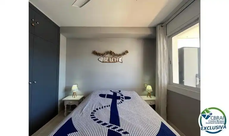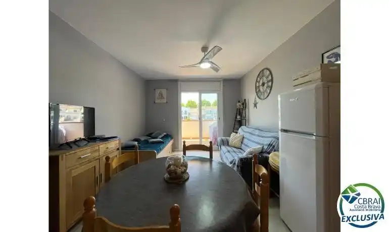 Hermoso apartamento luminoso en el puerto deportivo de Empuriabrava con una vista agradable. Está ubicado en un edificio muy bien mantenido en la planta baja. Se compone de una sala de estar con cocina integrada con vistas a la gran terraza de 12 m2, desde la terraza se puede disfrutar de una vista al puerto privado y los barcos. Hay un dormitorio con vista también al canal y un baño con ducha. La exposición al sur es ideal para vivir todo el año. A unos 1200 m del centro y la playa y no lejos de supermercados y zona comercial.~~Ideal como segunda residencia o producto de alquiler!