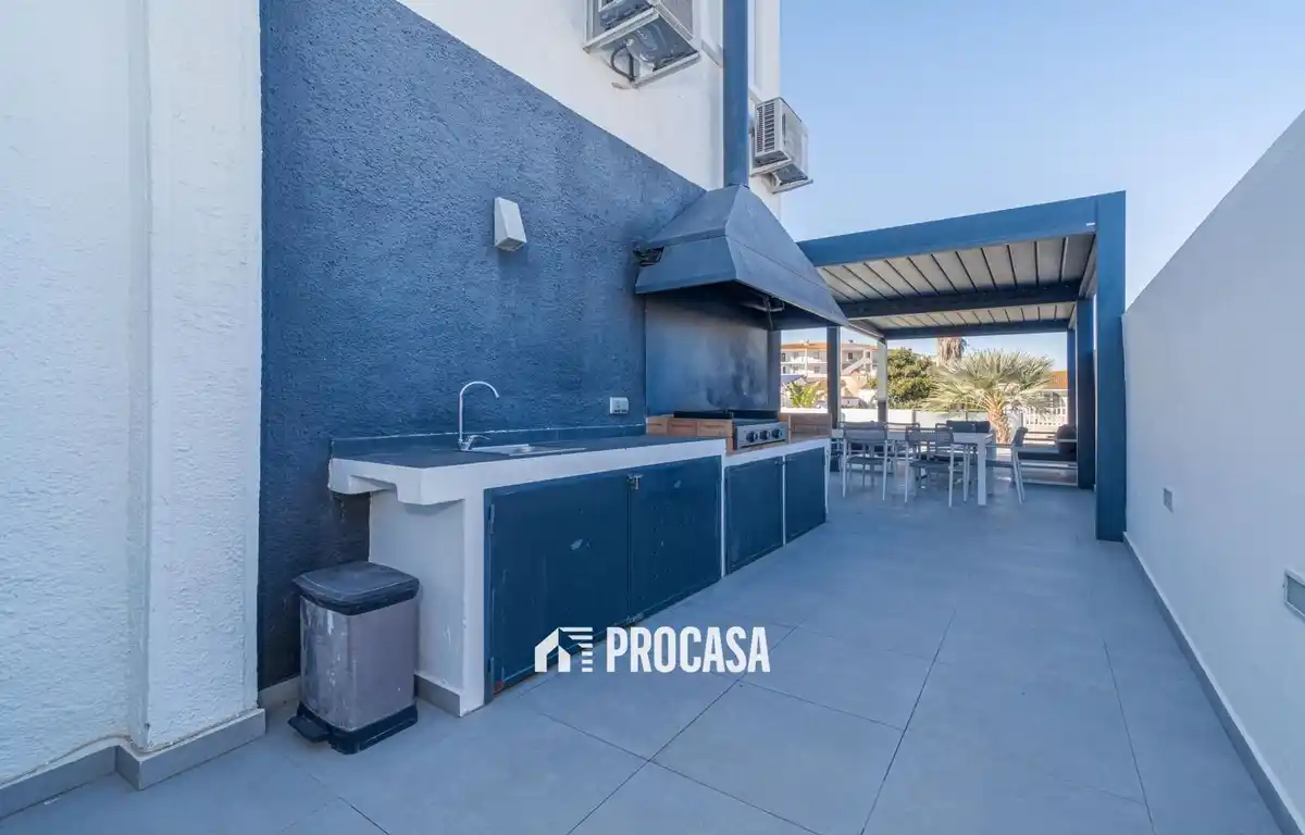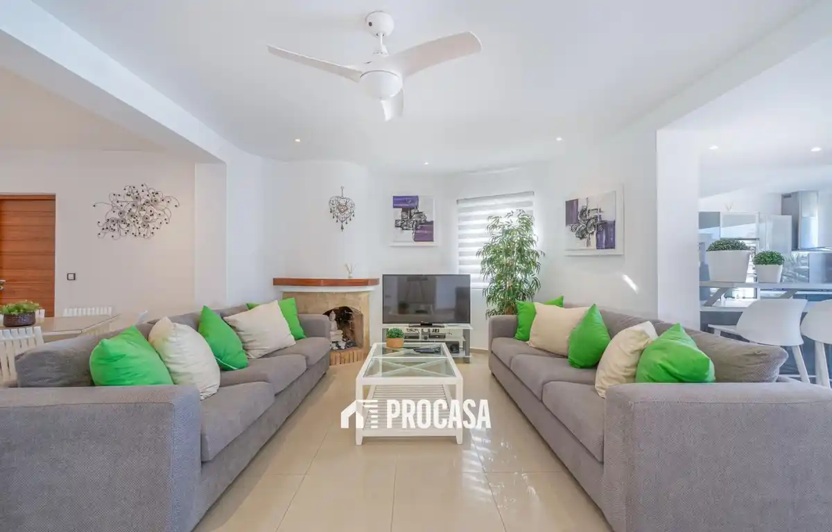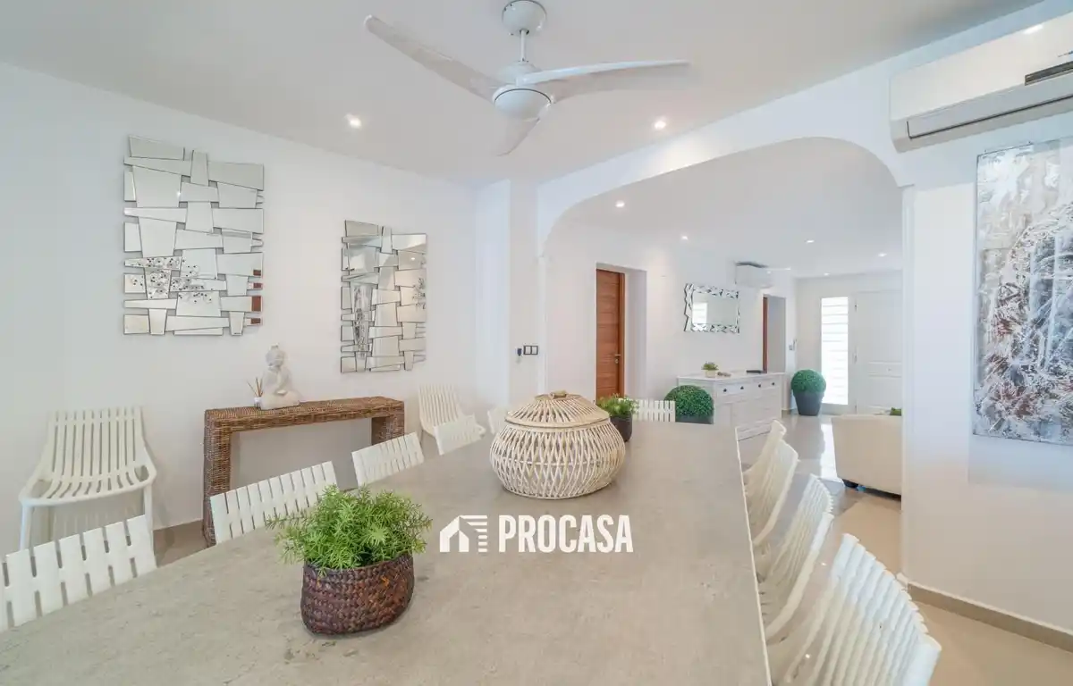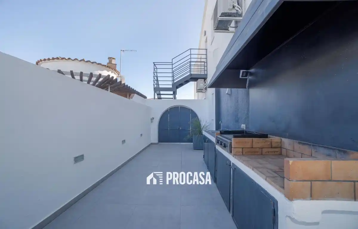 Situada en una parcela de 500 m² junto al canal ancho, esta vivienda renovada dispone de un amarre de 12,5 metros y unos exteriores actualizados en 2017. La propiedad se divide en dos zonas independientes, lo que ofrece flexibilidad para familias grandes o para recibir invitados. En la planta baja, el garaje comunica directamente con la vivienda. Aquí se encuentra la cocina, el salón-comedor con salida a la terraza, así como cuatro dormitorios y cuatro baños, dos de ellos con baño propio. La primera planta, con entrada independiente desde el lateral, cuenta con cuatro dormitorios y dos baños, además de una terraza con vistas al canal. En el exterior, hay una piscina, una zona de estar bajo pérgola y una cocina de verano, creando un espacio práctico y agradable. Extras: chimenea, ventiladores, aire acondicionado frío/calor, ventanas de PVC con doble acristalamiento y armarios empotrados.