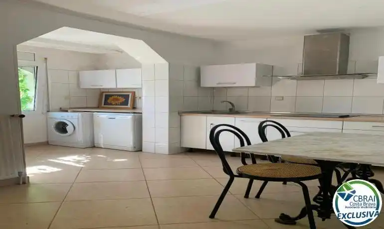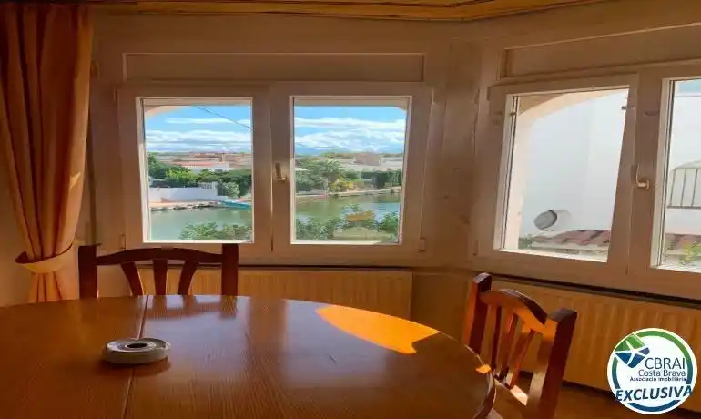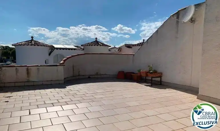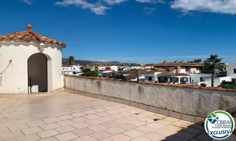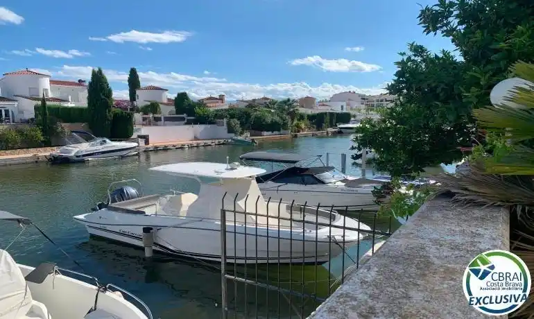 Casa semi adosada a reformar ubicada en Empuriabrava, a unos pocos metros del parque y de la zona comercial, y a unos 3 kilómetros del mar. La casa tiene 3 plantas y se distribuye en la siguiente manera:En la planta baja: Una terraza delantera, un recibidor, un comedor con una cocina abierta, un dormitorio con acceso a una terraza trasera, y un cuarto de baño.En la primera planta: Un dormitorio, un cuarto de baño, una sala de estar con chimenea, y una cocina.En la segunda planta: Una amplia terraza con bonitas vistas despejadas. La casa necesita reformas pero tiene potencial, se podría convertir en una casa entera o en 2 apartamentos con un dormitorio cada uno. Tiene parcialmente ventanas en PVC con doble cristal.La casa se vende con un amarre privado justo a lado, así como un trastero.