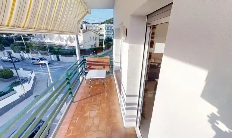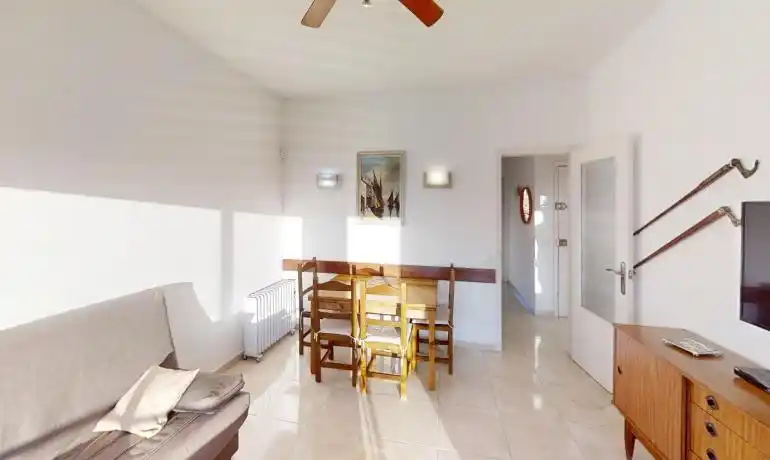 Luminoso y bien cuidado apartamento en una zona tranquila. Esta encantadora vivienda, situada en la segunda planta, dispone de dos dormitorios, un salón-comedor muy luminoso, cocina independiente y baño. Desde la soleada terraza se disfrutan vistas espectaculares al mar y a las montañas, con puestas de sol inolvidables.~El complejo ofrece piscina comunitaria, jardines bien mantenidos y zona de aparcamiento. Rodeado de olivares, el apartamento está ubicado en un barrio residencial muy tranquilo, a solo 200 m de un restaurante y a unos 1.000 m del centro de Roses. Los amantes de la naturaleza disfrutarán de rutas de senderismo y ciclismo que comienzan justo frente a la vivienda. El jardín vallado y la zona de piscina son perfectos para familias con niños. Pista de tenis y piscina municipal cubierta a solo 500 m. ¡Un lugar ideal para unas vacaciones tranquilas o para vivir todo el año!~