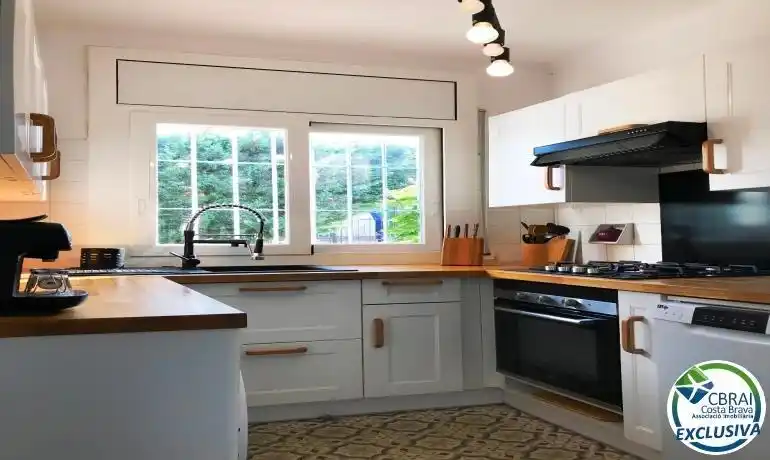Esta propiedad cuenta con licencia de alquiler de temporada (HUTG-010825).~Casa en venta ubicada en la urbanización Mas Boscà, entre 2 calles (2 entradas al jardín), a unos 3 km de la ciudad de Roses y a unos pasos de los campos. La casa consta de una sala de estar / comedor, una cocina separada, 2 dormitorios con armarios empotrados, un cuarto de baño con ducha, y un W.C. Tiene ventanas de PVC con doble cristal, aire acondicionado y se vende amueblada. Al exterior, una terraza cubierta, un amplio jardín con una piscina, y un trastero. Opcional, se puede ampliar la casa o añadir una segunda planta. La casa es ideal para vivir todo el año o como segunda residencia para pasar agradables vacaciones, así como para invertir en alquiler de temporada.
