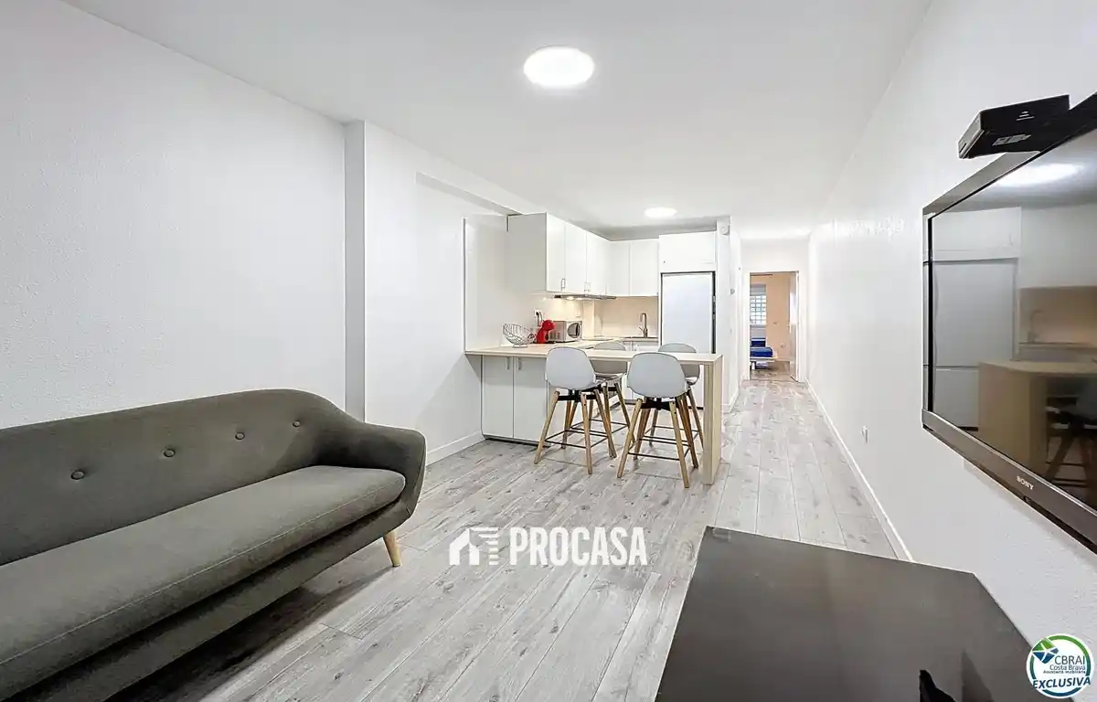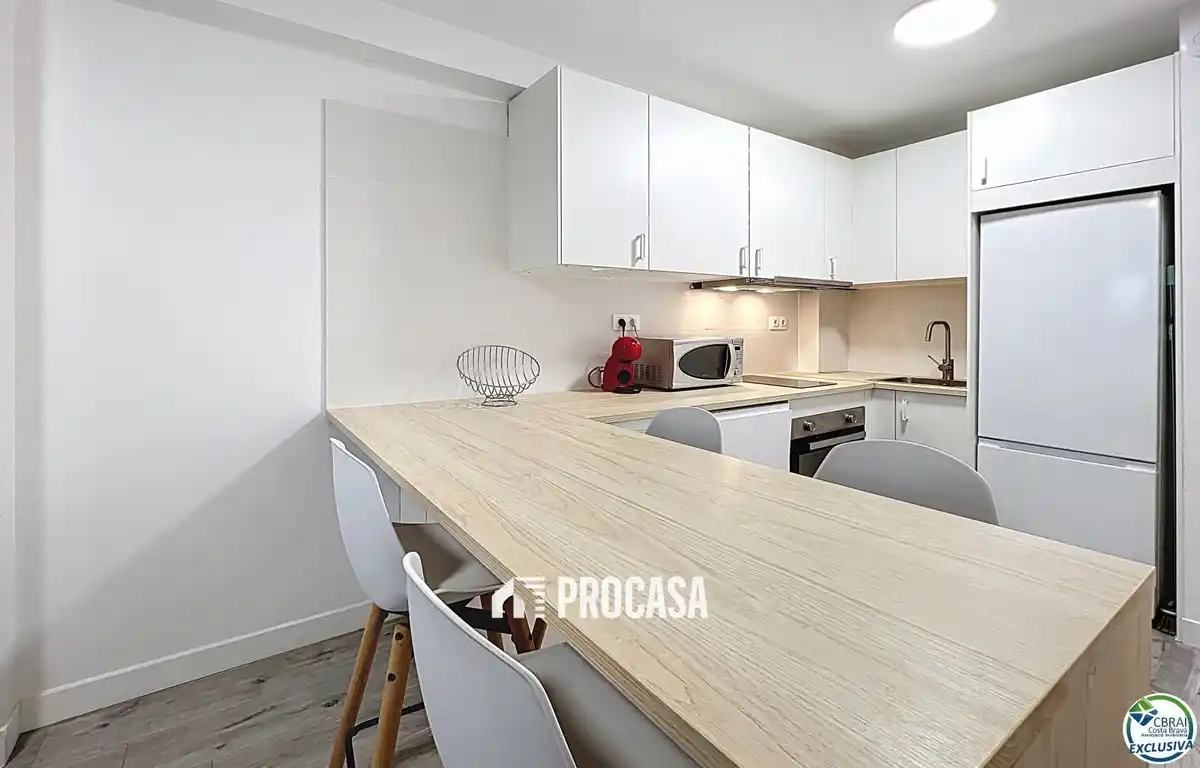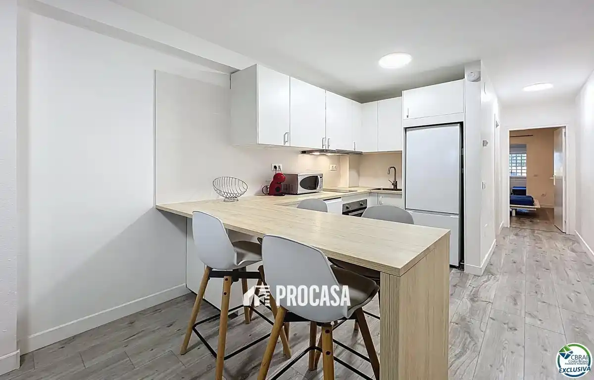 En la marina de Santa Margarita, en Roses, este apartamento renovado en planta baja te sumerge de inmediato en un ambiente vacacional: piscina soleada, jardines verdes, una residencia acogedora y conserjería en el mismo edificio. Dos dormitorios, salón agradable y una terraza ajardinada para disfrutar de los días soleados. Se vende amueblado con electrodomésticos nuevos. Parking seguro para bicicletas y aparcamiento comunitario completan este entorno ideal para vivir o alojarse al ritmo de la Costa Brava.