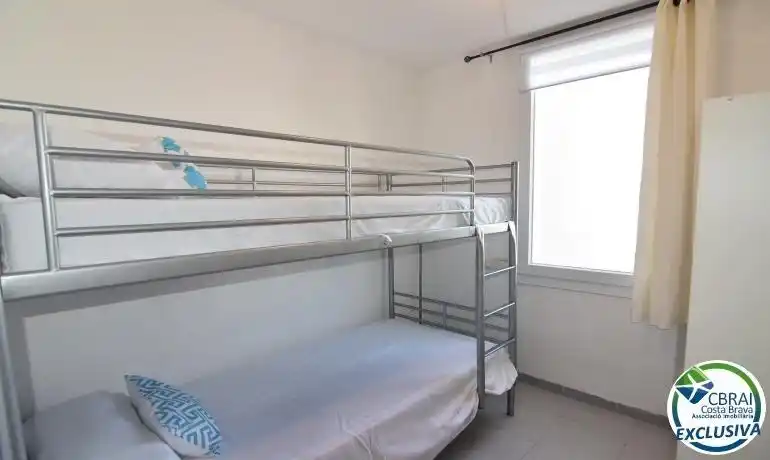 Descubra este acogedor apartamento de 75 m², ideal tanto como residencia habitual como para disfrutar de sus vacaciones junto al mar. Situado a tan solo 1.200 metros de la playa de Santa Margarida,Roses en una zona tranquila pero bien comunicada, este inmueble ofrece una excelente combinación de confort, funcionalidad y ubicación.~~La vivienda dispone de tres dormitorios luminosos, un cuarto de baño completo con bañera, y una práctica cocina americana totalmente equipada, que se integra perfectamente con el salón-comedor, creando un espacio abierto y acogedor para compartir momentos en familia o con amigos.~~Desde el salón y una de las habitaciones se accede a una agradable terraza, perfecta para relajarse al aire libre, disfrutar de las suaves brisas mediterráneas.~~Además, la propiedad cuenta con una parada de autobús a solo 50 metros, lo que facilita el acceso al centro de Roses.~