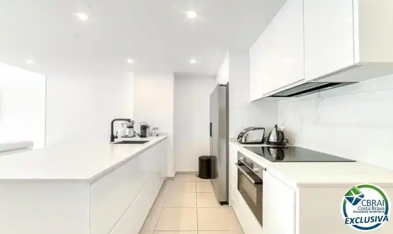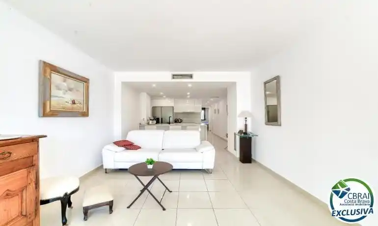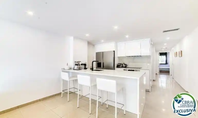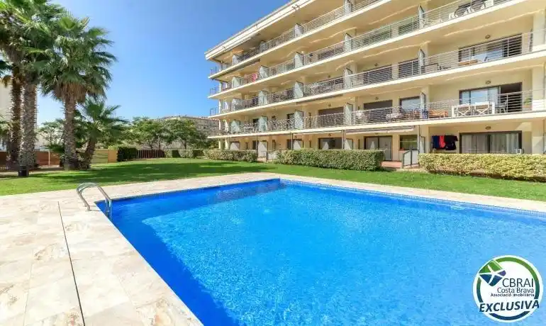 ~Descubre este exclusivo apartamento en planta baja, situado en un edificio del 2007 en primera línea de mar, en la zona de Salatar (Roses). Completamente reformado con un estilo moderno y elegante, ofrece un ambiente acogedor y actual, ideal para disfrutar del Mediterráneo durante todo el año.~~La vivienda dispone de dos dormitorios y dos baños completos, además de un luminoso salón-comedor con cocina abierta y acceso directo a una terraza privada en planta baja, perfecta para contemplar el mar.~~Equipada con aire acondicionado y calefacción, esta propiedad garantiza confort en cualquier estación. El edificio cuenta con piscina comunitaria y zonas ajardinadas.~~Incluye plaza de parking privada en el sótano del edificio para mayor comodidad.~~Un apartamento único con vistas al mar y todas las comodidades para vivir o veranear en una de las zonas más privilegiadas de Roses.