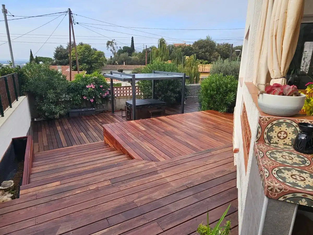 En la planta baja encontramos un acogedor recibidor que nos conduce a la pieza principal de la vivienda: un gran salón-comedor con chimenea, espacioso y luminoso, con acceso directo al exterior. La cocina americana, completamente equipada, se integra perfectamente en este espacio creando una zona práctica y moderna. En esta misma planta disponemos también de una habitación destinada a lavandería y despensa (ideal para guardar comida y vinos), un aseo independiente, dos baños completos con ducha, además de dos dormitorios y un pequeño espacio habilitado como dressing. En la planta superior se sitúa una amplia habitación doble, con acceso a una terraza privada desde la que se disfruta de una preciosa vista al mar. Esta planta cuenta también con un aseo adicional y un segundo dressing, proporcionando comodidad e independencia. En la parte inferior de la casa, encontramos una gran terraza con salida directa al jardín que rodea toda la propiedad, creando un entorno natural perfecto para relajarse al aire libre. La vivienda no dispone de piscina actualmente, pero existe la posibilidad de instalar una. En su lugar, la casa cuenta con un jacuzzi, además de una agradable zona chill out y una zona de barbacoa, perfectas para reuniones y momentos de ocio. Para completar las comodidades, la propiedad incluye un garaje cerrado. Una casa con múltiples espacios, muy bien distribuida, con vistas, luz y un exterior versátil para adaptarlo al gusto del futuro propietario.[IW]