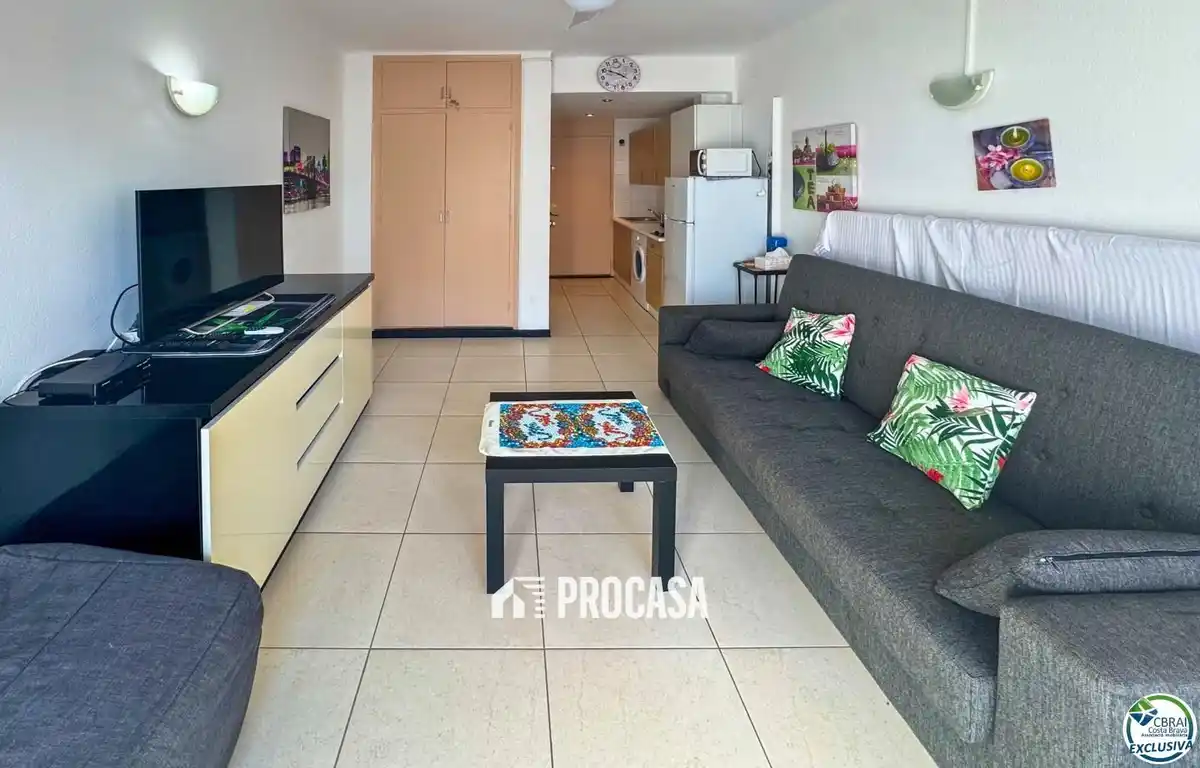 Ubicado en una de las zonas más valoradas de Roses, el Salatar, este encantador estudio combina comodidad y ubicación privilegiada. Situado en la tercera planta con ascensor de un edificio bien mantenido, ofrece un ambiente moderno y funcional ideal para disfrutar del estilo de vida mediterráneo. El interior, completamente renovado, cuenta con una cocina abierta equipada, un baño contemporáneo con ducha y una zona de estar luminosa con acceso directo a una terraza acristalada de 6 m², perfecta para relajarse o disfrutar de comidas con vistas al entorno urbano y a pocos pasos del paseo marítimo. La vivienda dispone de 20 m² interiores bien aprovechados y forma parte de una residencia con parking comunitario, garantizando comodidad y fácil acceso. Su excelente ubicación, a solo 40 metros de la playa del Salatar, permite disfrutar de todos los servicios, restaurantes y actividades costeras sin necesidad de vehículo. Una opción ideal tanto como segunda residencia junto al mar como para quienes buscan una inversión en una de las zonas más demandadas de la Costa Brava.