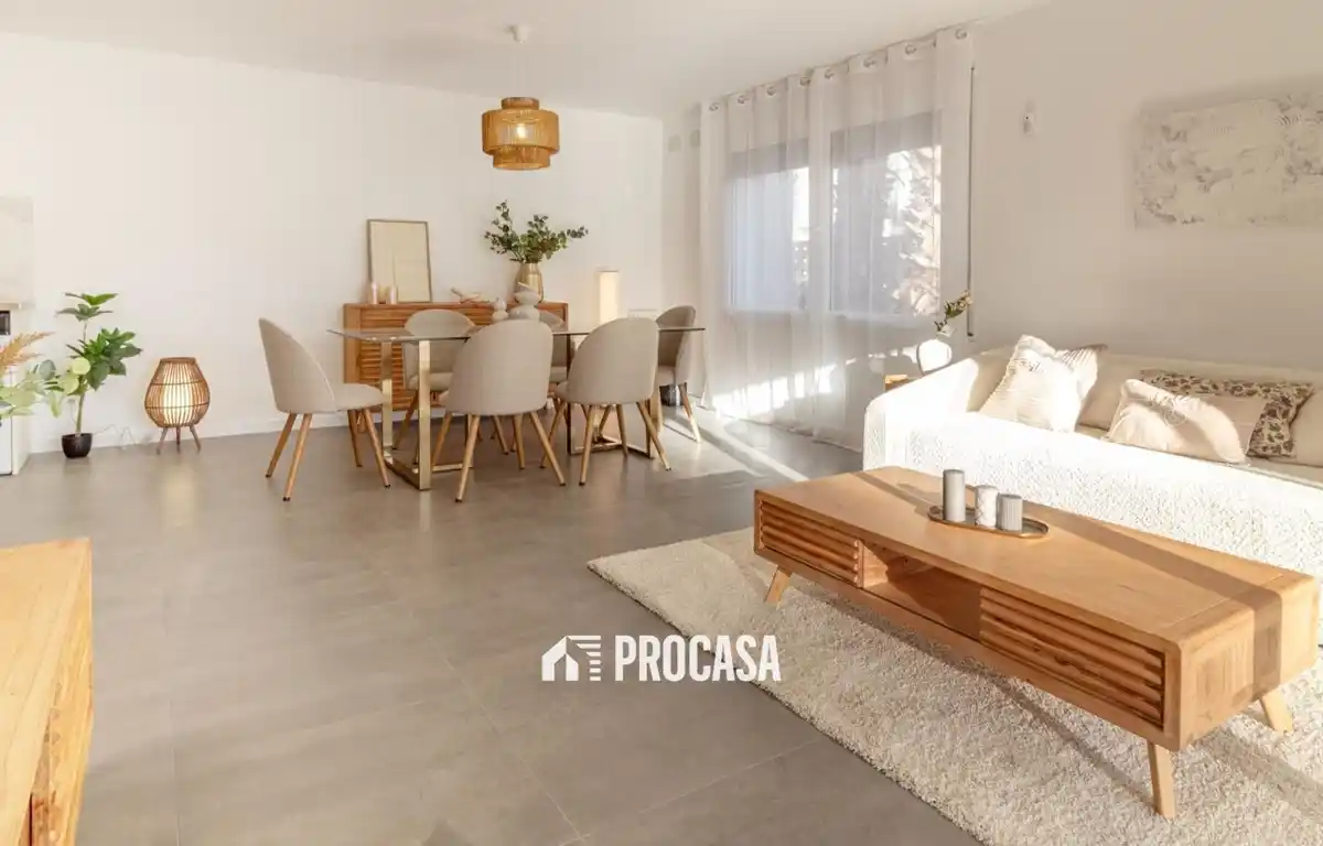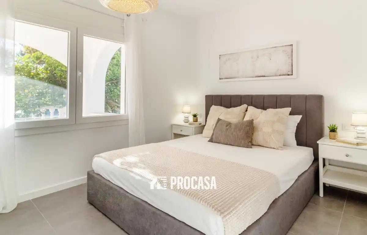 Este atractivo apartamento en planta baja se encuentra en un pequeño complejo residencial formado únicamente por seis viviendas, todas renovadas. Su tamaño, comodidad y localización lo convierten en una opción ideal tanto como residencia habitual como para disfrutar de escapadas cerca del mar. Al acceder a la vivienda, nos recibe un espacio amplio y diáfano donde se integran la zona de estar, el comedor y la cocina. Esta estancia se abre directamente a una generosa terraza privada, perfecta para desconectar, comer al aire libre o aprovechar el clima mediterráneo durante todo el año. El apartamento dispone de dos dormitorios —uno equipado con prácticos armarios empotrados— y un baño moderno con ducha. La propiedad viene equipada con aire acondicionado, sistema de alarma, persianas eléctricas y se entrega completamente amueblada, lista para empezar a disfrutarla desde el primer día. El recinto ofrece piscina comunitaria y cuenta además con plaza de aparcamiento, un extra muy valorado en la zona. Otro de sus grandes atractivos es la ubicación: justo frente a la entrada comienza un agradable paseo que discurre junto al río, ideal para caminar o hacer ejercicio. La playa se encuentra a tan solo cuatro minutos andando. Una vivienda que combina comodidad, estilo y cercanía al mar, perfecta para quienes buscan calidad de vida. Para más información o para organizar una visita, no dude en ponerse en contacto con nosotros.