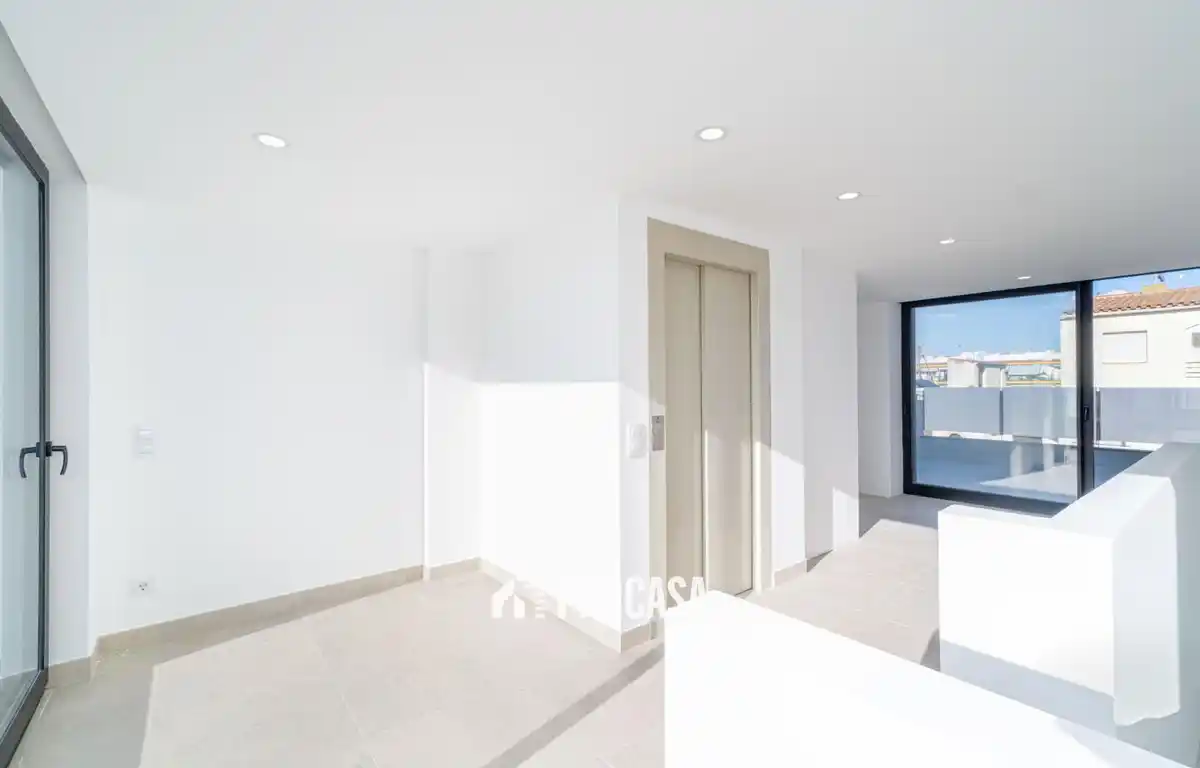 Dit prachtige nieuw gebouwde huis beschikt over een eigen aanlegplaats van 15 m, perfect voor zeilboten of motorboten. De locatie is onverslaanbaar, op slechts 300 meter van de haven en het strand, zodat u volop kunt genieten van het kustleven. Het pand is verdeeld over drie verdiepingen en beschikt over een solarium op het dak van 48 m², een afgesloten garage en een lift die alle niveaus met elkaar verbindt. Binnen biedt het vier ruime tweepersoonsslaapkamers, waarvan één op de begane grond, samen met drie complete badkamers en een gastentoilet. Er is ook een terras en een balkon, perfect om te ontspannen en te genieten van het mediterrane klimaat. Dankzij de oriëntatie op het zuiden ontvangt de woning de hele dag door veel natuurlijk licht. Vanaf de tweede en derde verdieping is er zijdelings uitzicht op zee, wat zorgt voor een serene en vredige sfeer. Afwerkingen zijn onder meer aluminium schrijnwerk, keramische vloeren, een volledig uitgeruste open keuken, warmtepompverwarming en omkeerbare airconditioning. Extra's zijn onder meer pre-installatie voor alarm en jacuzzi, LED-binnenverlichting, kelder en berging, allemaal ontworpen voor maximaal comfort en functionaliteit. Momenteel is het mogelijk om de interieurafwerking aan te passen, wat een unieke kans biedt om het ontwerp af te stemmen op de persoonlijke smaak en stijl van de eigenaar.