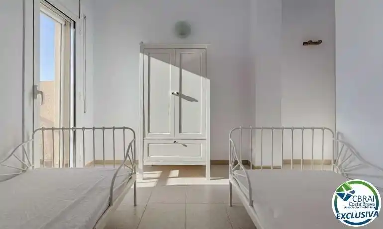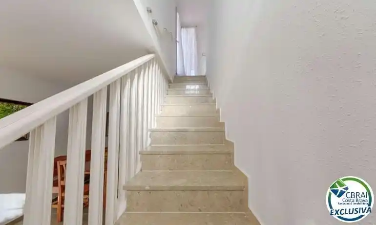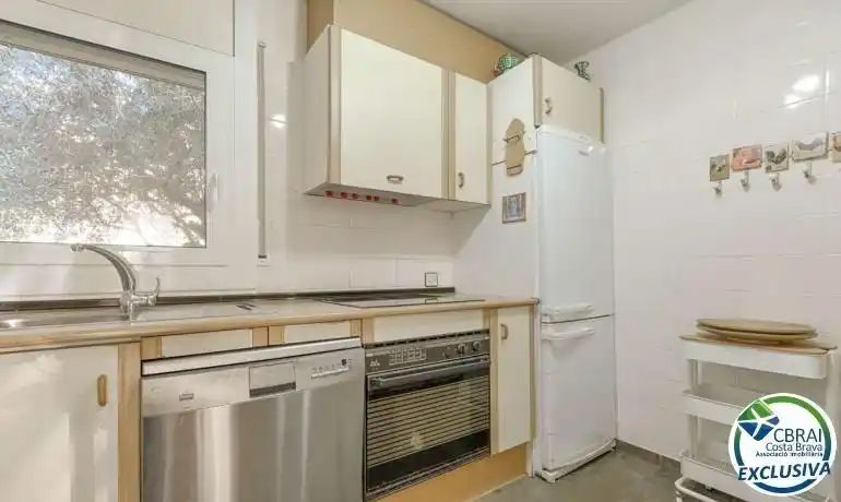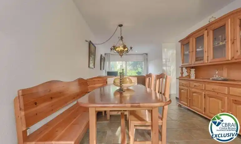 ~ROSES, SANTA MARGARITA: Gelegen in een veilig en rustig wooncomplex, biedt dit charmante half-onder-een-kapwoning comfortabel wonen met een gemeenschappelijk zwembad, een privétuin en twee parkeerplaatsen. Het profiteert ook van een uitstekende ligging, dicht bij voorzieningen zoals winkels, diensten en vervoersverbindingen. Het pand, gebouwd op twee niveaus, bestaat op de begane grond uit een woon-/eetkamer, een ingerichte en volledig uitgeruste keuken, een slaapkamer en een badkamer, waardoor indien gewenst een eenverdieping kan wonen. Boven vind je twee slaapkamers, een volledige badkamer en een terras, ideaal om ontspannende momenten buiten te beleven. Buiten biedt de privétuin een echte verlenging van de leefruimte, perfect om op zonnige dagen te dineren. Het goed onderhouden complex beschikt over een gemeenschappelijk zwembad en biedt een veilige en aangename omgeving. Dit pand is ideaal als primaire of tweede woning, of als investering, waarbij rust, comfort en nabijheid van voorzieningen worden gecombineerd.~