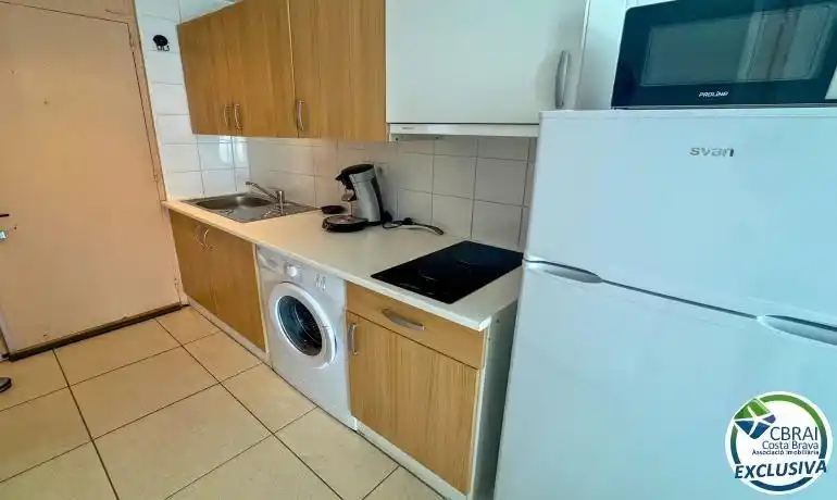 ~Gelegen in een van de meest gewilde wijken van Roses, Salatar, combineert deze charmante studio comfort, licht en een onovertroffen locatie. Gelegen op de derde verdieping met lift van een goed onderhouden gebouw, biedt het een moderne en functionele ruimte die is ontworpen voor het mediterrane leven.~~Het interieur is volledig gerenoveerd en beschikt over een open ingerichte keuken, een moderne badkamer met douche en een lichte woonkamer met directe toegang tot een glazen terras van 6 m², ideaal om te ontspannen of te dineren met natuurlijk licht.~~Het pand biedt 20 m² binnenruimte slim verdeeld en behoort tot een residentie met gemeenschappelijke parkeergelegenheid, wat zorgt voor gemak en gemakkelijke toegang.~~De toplocatie, op slechts 40 meter van het strand van Salatar, stelt u in staat om te genieten van de zee, restaurants en alle voorzieningen op loopafstand.~~Een ideale pied-à-terre aan zee of een aantrekkelijke investering in een van de meest gewilde gebieden van de Costa Brava.~