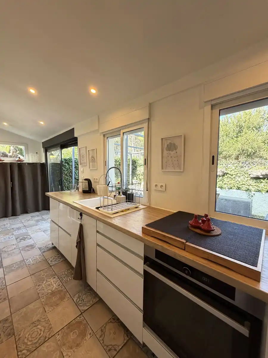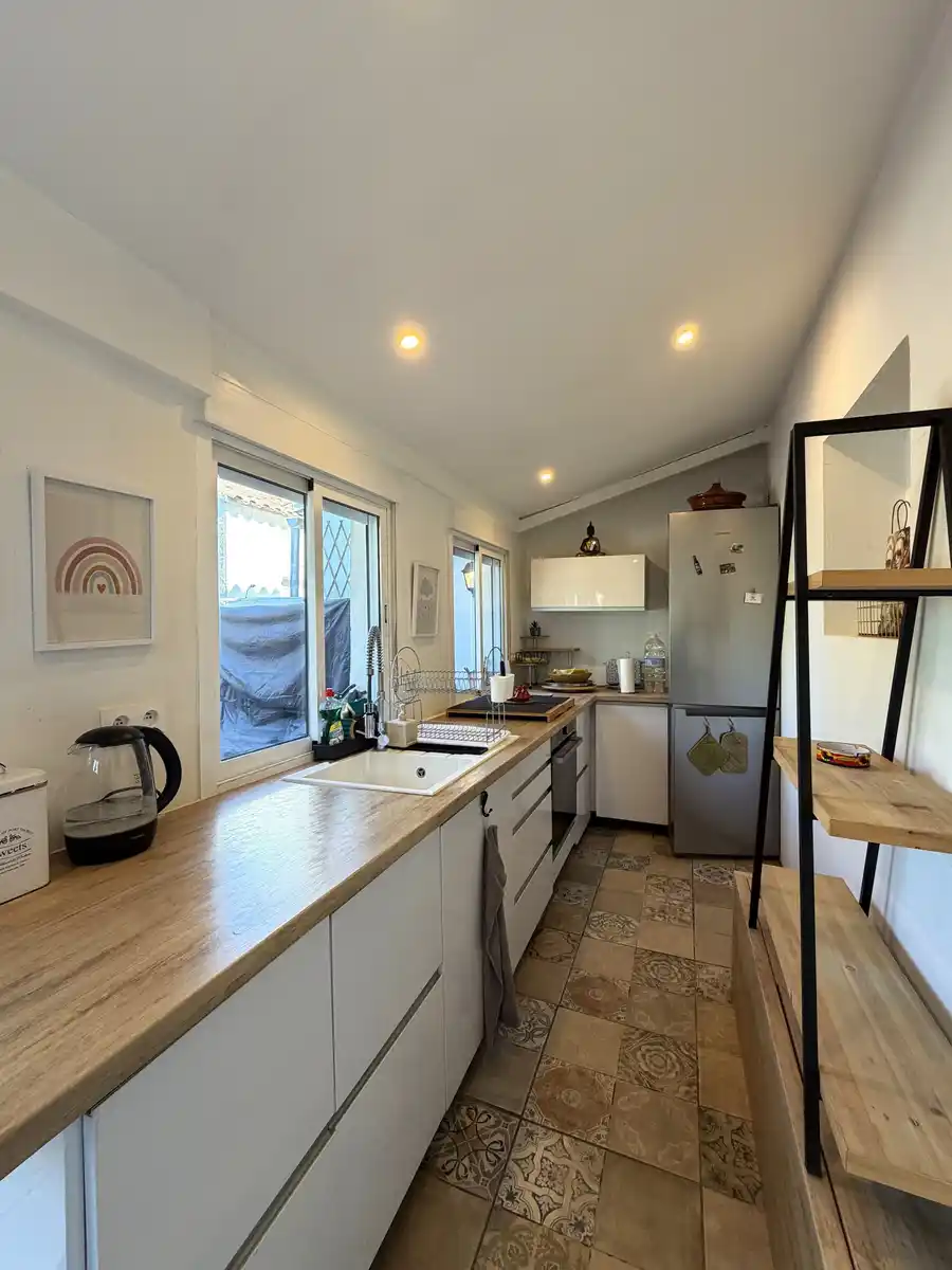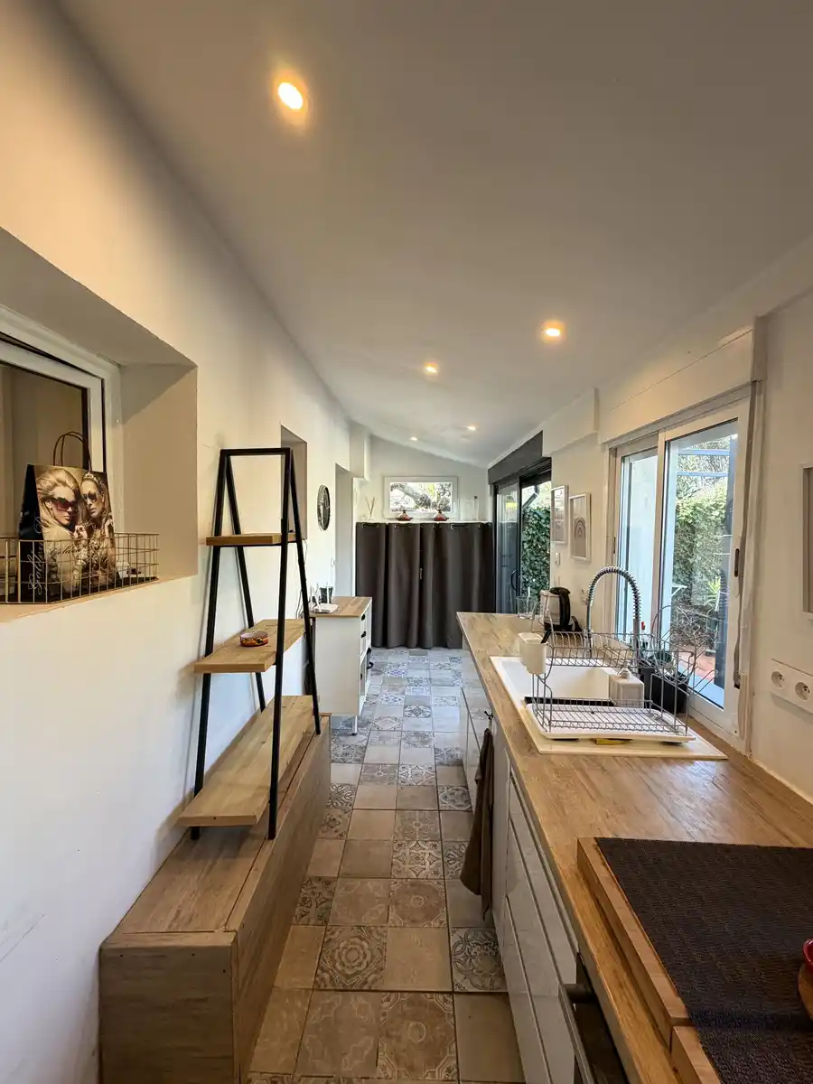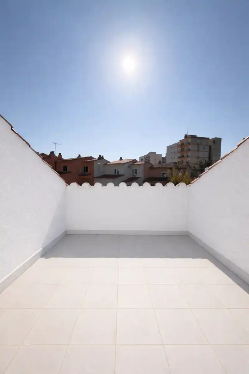Wij presenteren dit charmante twee-onder-kapwoning in Mas Matas, een rustige en zeer gewilde buurt, ideaal voor wie op zoek is naar een huis met ruime buitenruimtes en een goed ontworpen indeling. Het terrein beschikt over een aangenaam terras aan de voorkant met een veranda die ons verwelkomt, een perfecte plek om van de buitenlucht te genieten of een ontspannen zithoek te creëren. Bij binnenkomst krijgen we toegang tot een recent aangepaste entree die extra ruimte en meer functionaliteit aan het huis biedt. Vanaf hier gaan we naar de gang, die leidt naar een ruime en lichte woon-eetkamer, ideaal om verschillende woonruimtes te creëren. Op dezelfde verdieping vinden we een gerenoveerde en volledig uitgeruste onafhankelijke keuken, een gerenoveerde badkamer met een inloopdouche en een zeer comfortabele tweepersoonskamer. Daarnaast is er op de begane grond toegang tot een tweede groot achterterras, een zeer veelzijdige ruimte met veel mogelijkheden, perfect voor familiebijeenkomsten, een speelruimte of gewoon genieten van rust en stilte. Op de bovenverdieping is er nog een slaapkamer met directe toegang tot een privéterras, ideaal om te ontspannen en optimaal te genieten van het natuurlijke licht. Een praktisch en gastvrij huis met al aangebrachte verbeteringen, gelegen in een aangename en goed verbonden woonwijk. Aarzel niet om contact met ons op te nemen voor meer informatie of om een bezichtiging te regelen. [IW]
